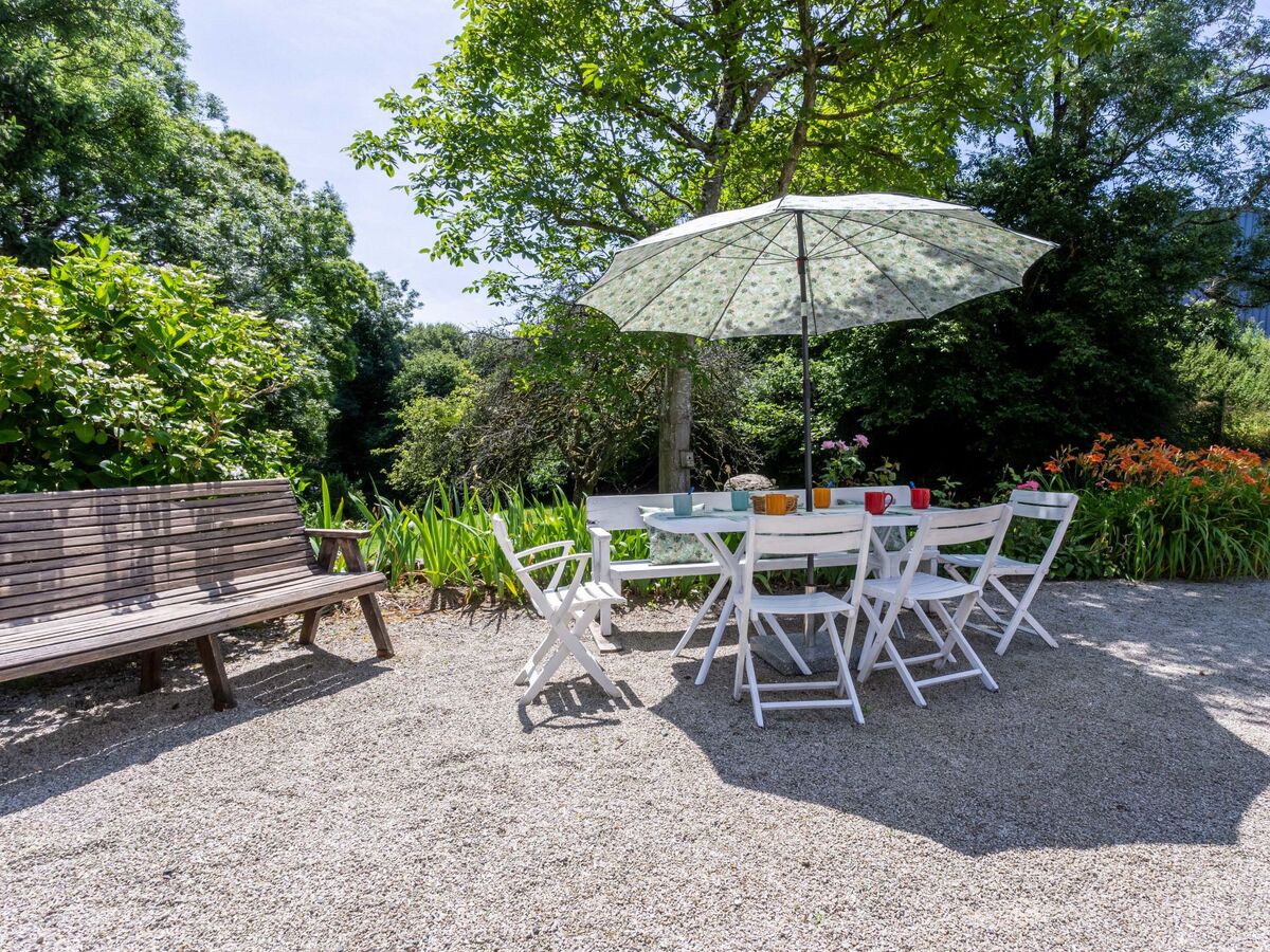 Terrasse, meubles de jardin, place de parking (pour 2 voitures) près de la maison.