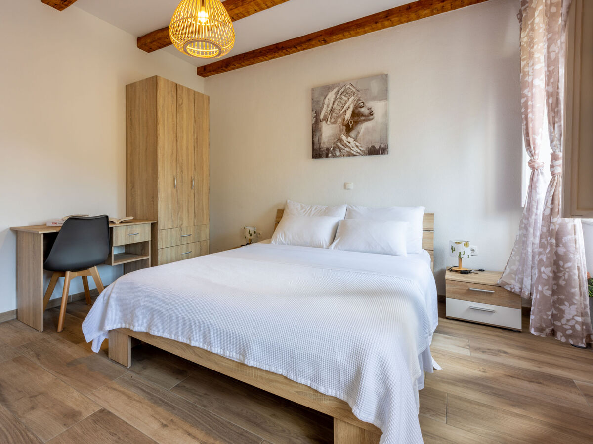 1 chambre avec 1 lit double (180 cm, longueur 200 cm).