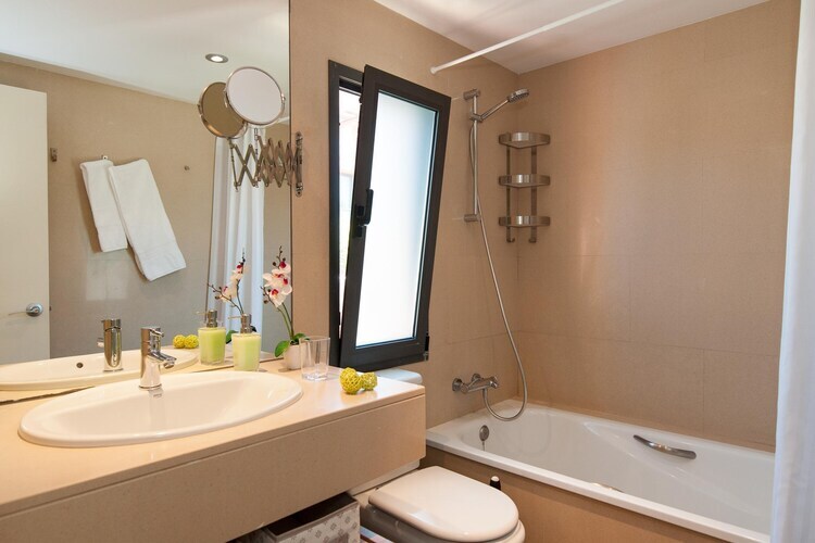 L'intérieur est complété par un salon moderne et lumineux, une salle à manger adjacente à la cuisine entièrement équipée. Cet hébergement dispose d'une télévision par satellite à écran plat, de la climatisation et d'un barbecue. Tout pour que nos hôtes se sentent chez eux ! L'espace extérieur comprend une piscine hors sol privée, dimensions : 2,40m x 1,80m (réchauffable en supplément) et une belle terrasse avec une salle à manger et un solarium avec chaises longues. Cette villa a également accès à une belle piscine commune. Cette villa est un endroit très confortable pour profiter de vacances bien méritées en famille.