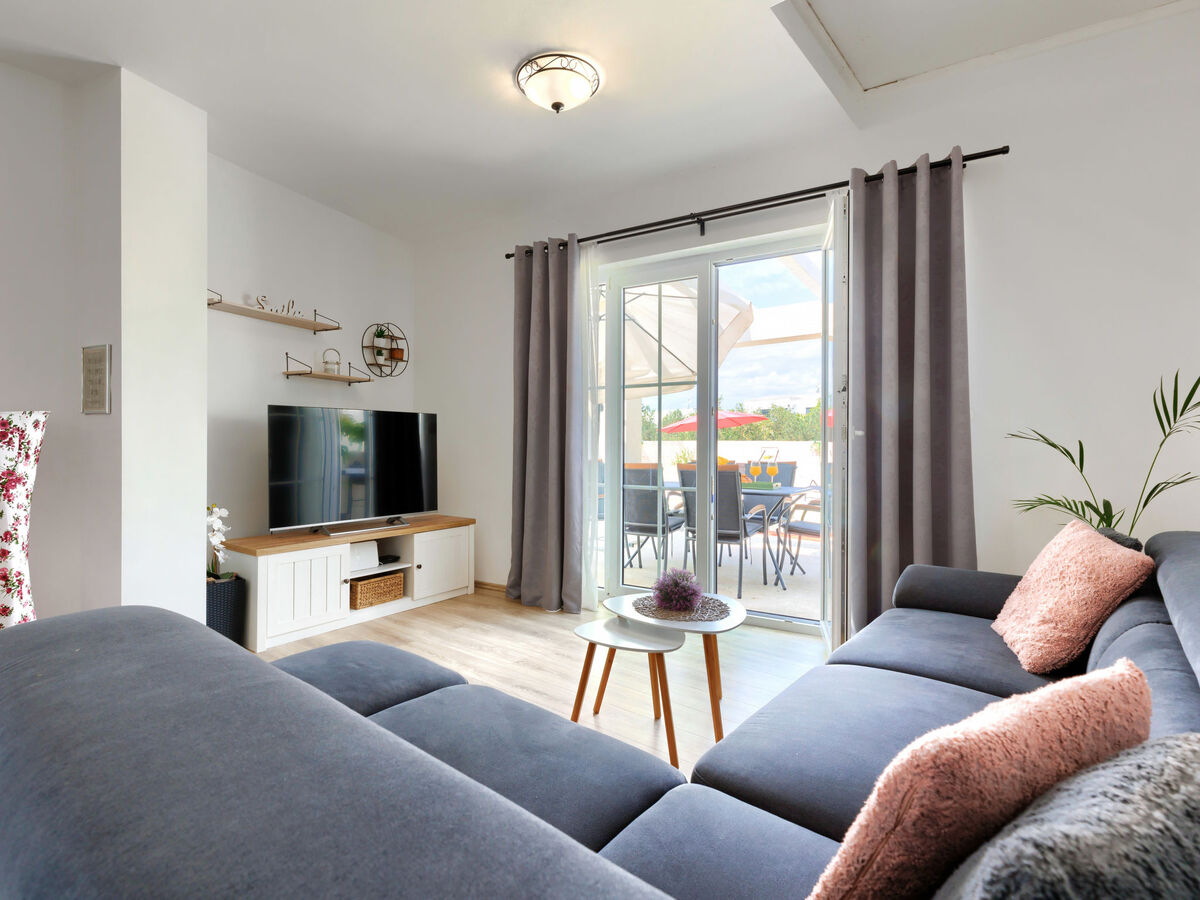 Séjour/salle à manger avec 1 divan-lit (140 cm, longueur 200 cm), TV (satellite), écran plat et air-conditionné.