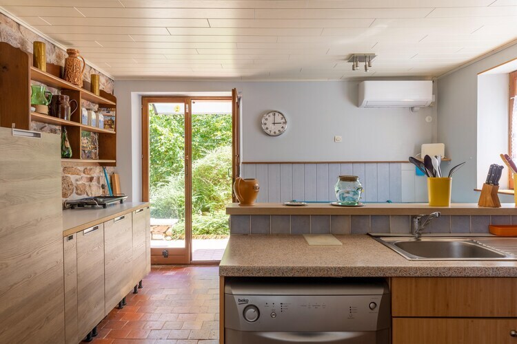 À l'intérieur, la maison climatisée assure un confort optimal pendant les mois les plus chauds. La cuisine ouverte est entièrement équipée pour préparer les repas, et le coin repas invite à des moments conviviaux. Que vous vous prélassiez sur la terrasse, profitiez du jardin ou exploriez les sentiers environnants, cette maison allie charme rustique et confort moderne. Un parking privé est disponible pour plus de confort.