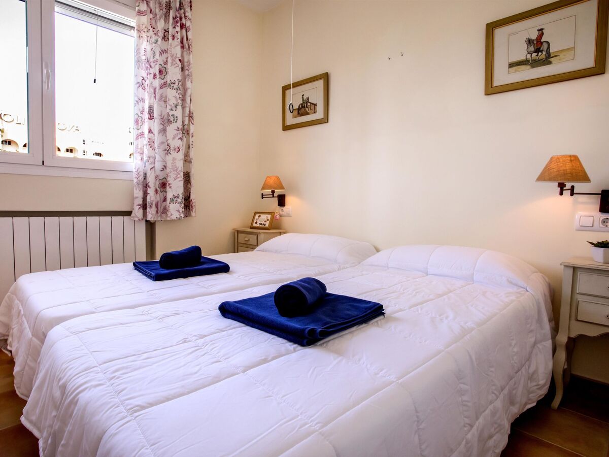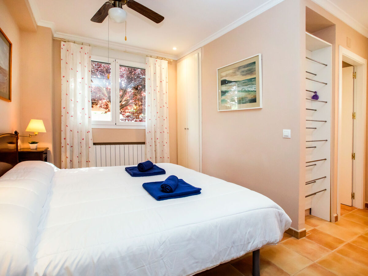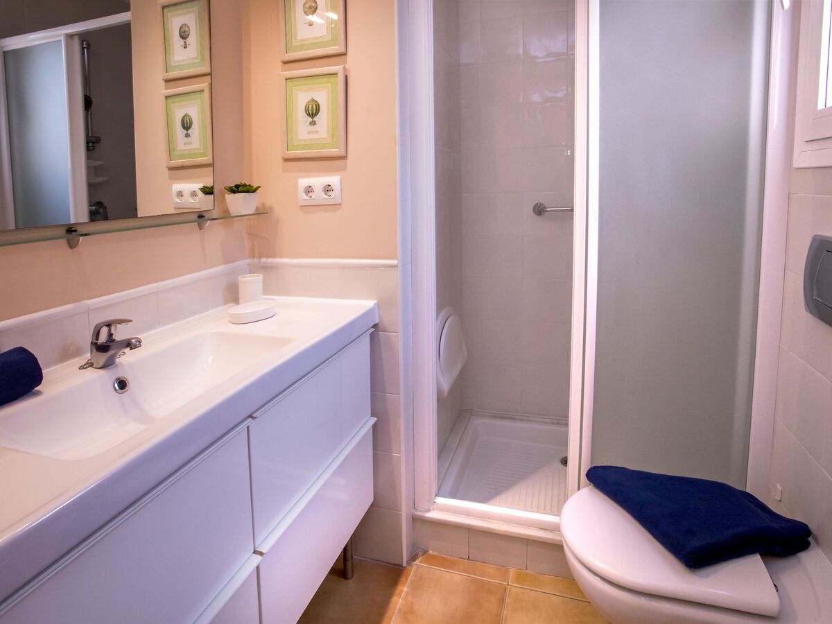 1 chambre avec 1 grand-lit (2 x 90 cm, longueur 180 cm), douche/WC et ventilateur.
