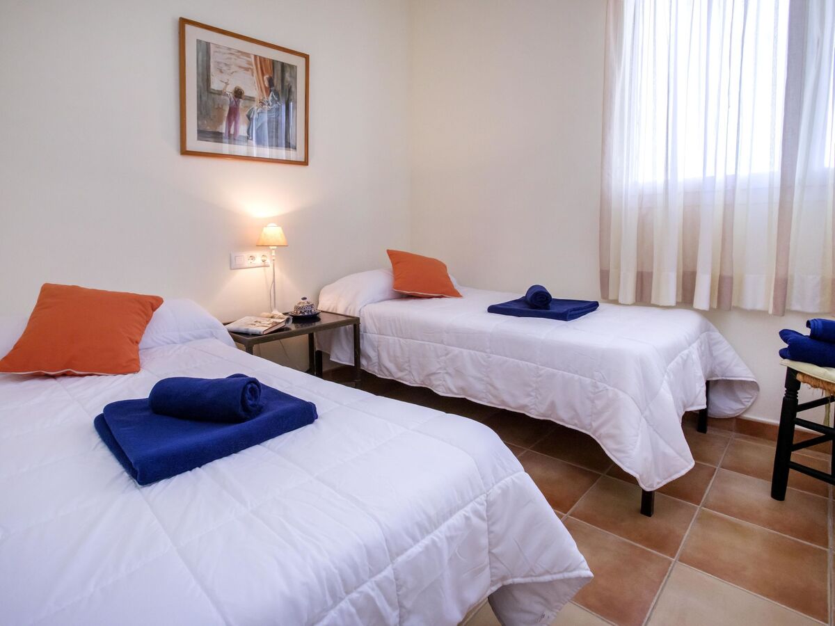 1 chambre avec 2 lits (80 cm, longueur 190 cm), ventilateur.