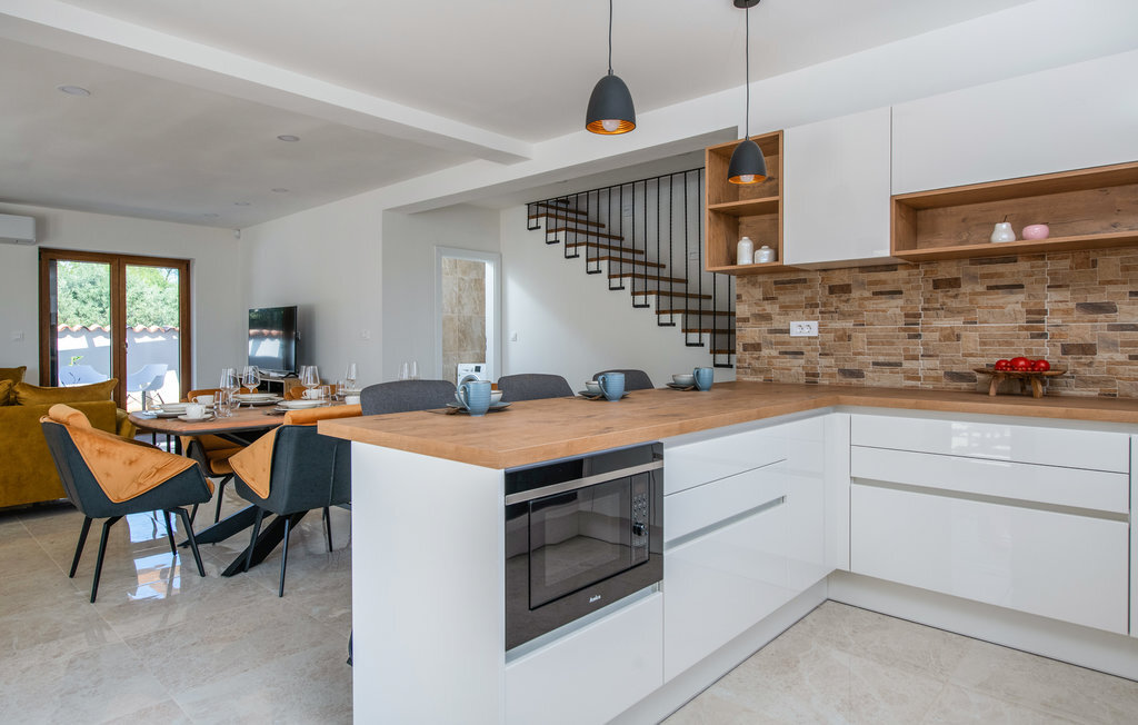 Voyagez avec votre famille nombreuse à Kavran et profitez pleinement du confort, du design et des pièces inondées de lumière de la Villa Lilliana. Vous pourrez vous y détendre, vous relaxer dans les chambres à coucher confortables et vous réunir au rez-de-chaussée pour vous détendre sur les canapés, regarder un film, jouer à la table à manger ou cuisiner ensemble dans la cuisine ouverte. Des matériaux de haute qualité et des meubles de bon goût créent un magnifique sentiment d'espace de vie.