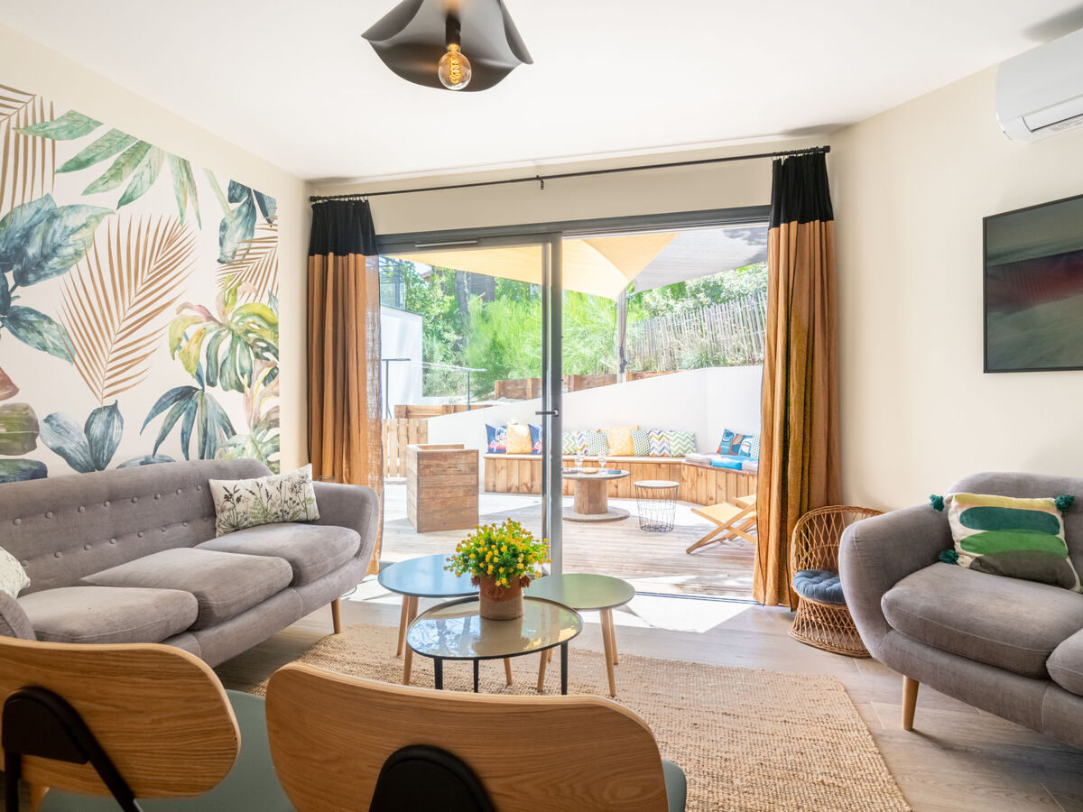Aménagement confortable et moderne: séjour/salle à manger avec TV (écran plat).