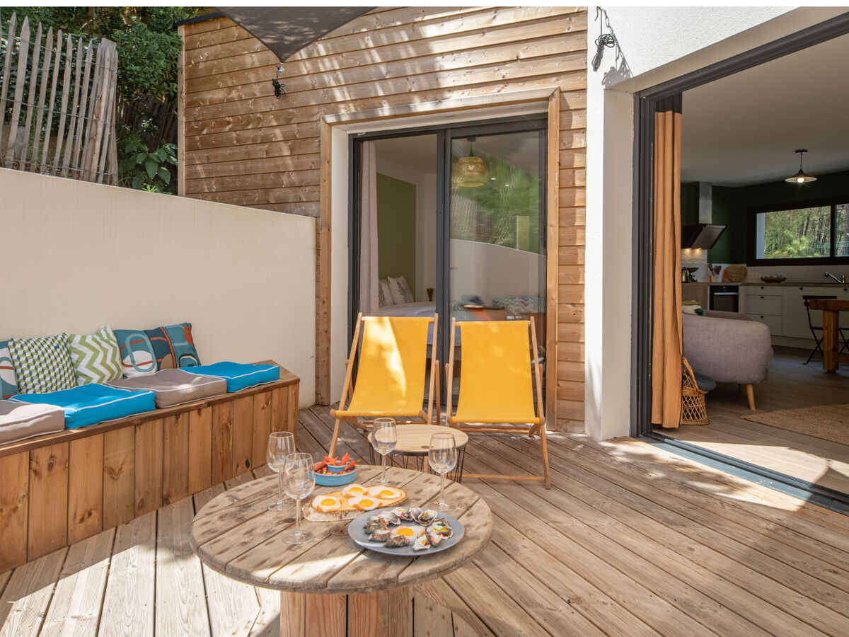 Attractions à proximité: Skate parc 950 m, Eco musée de Marquèze 40 km, Disc golf 100 m, Casino jeux 1 km, Biscarrosse 35 km, Arcachon 70 km.