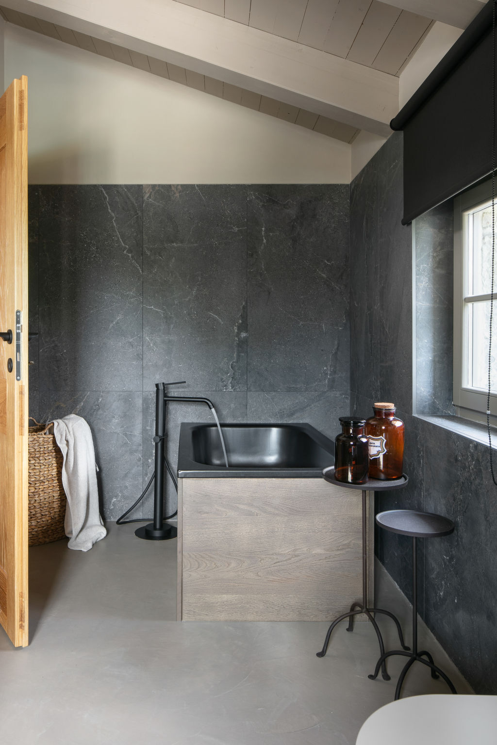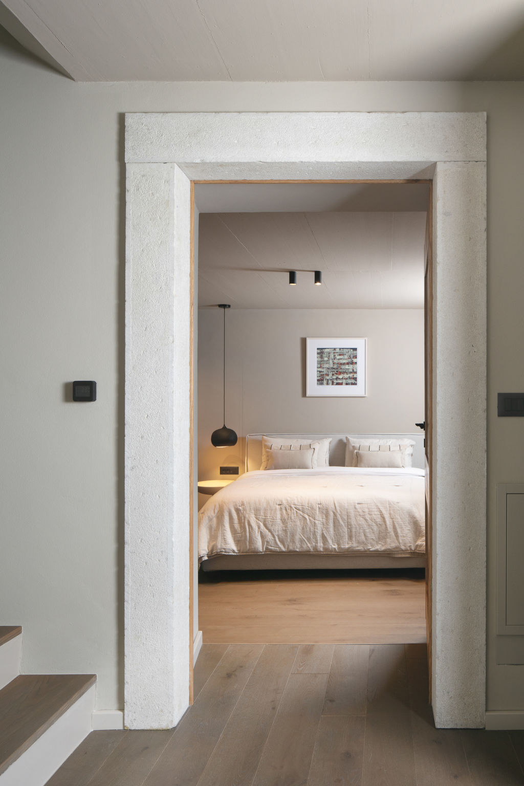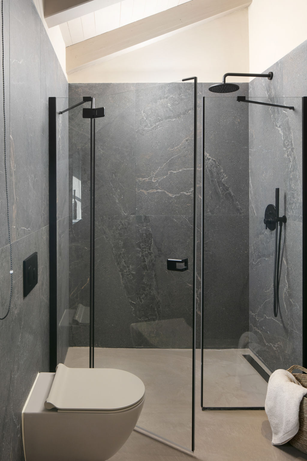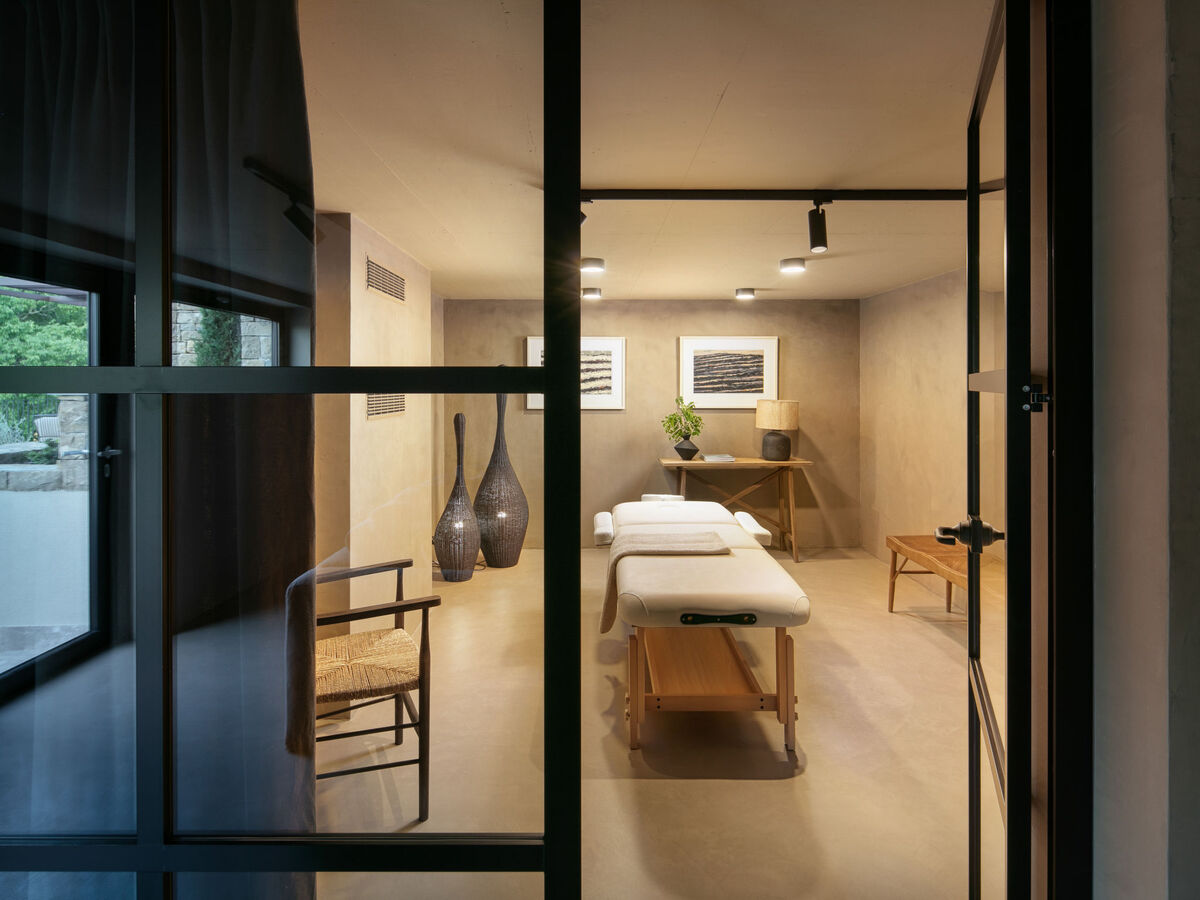 1 chambre avec 1 grand-lit (180 cm, longueur 200 cm), douche/WC, double vasque et TV (satellite).