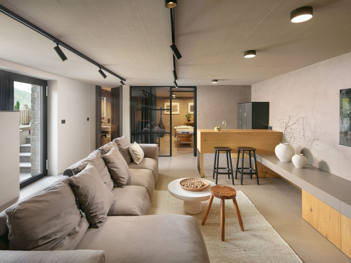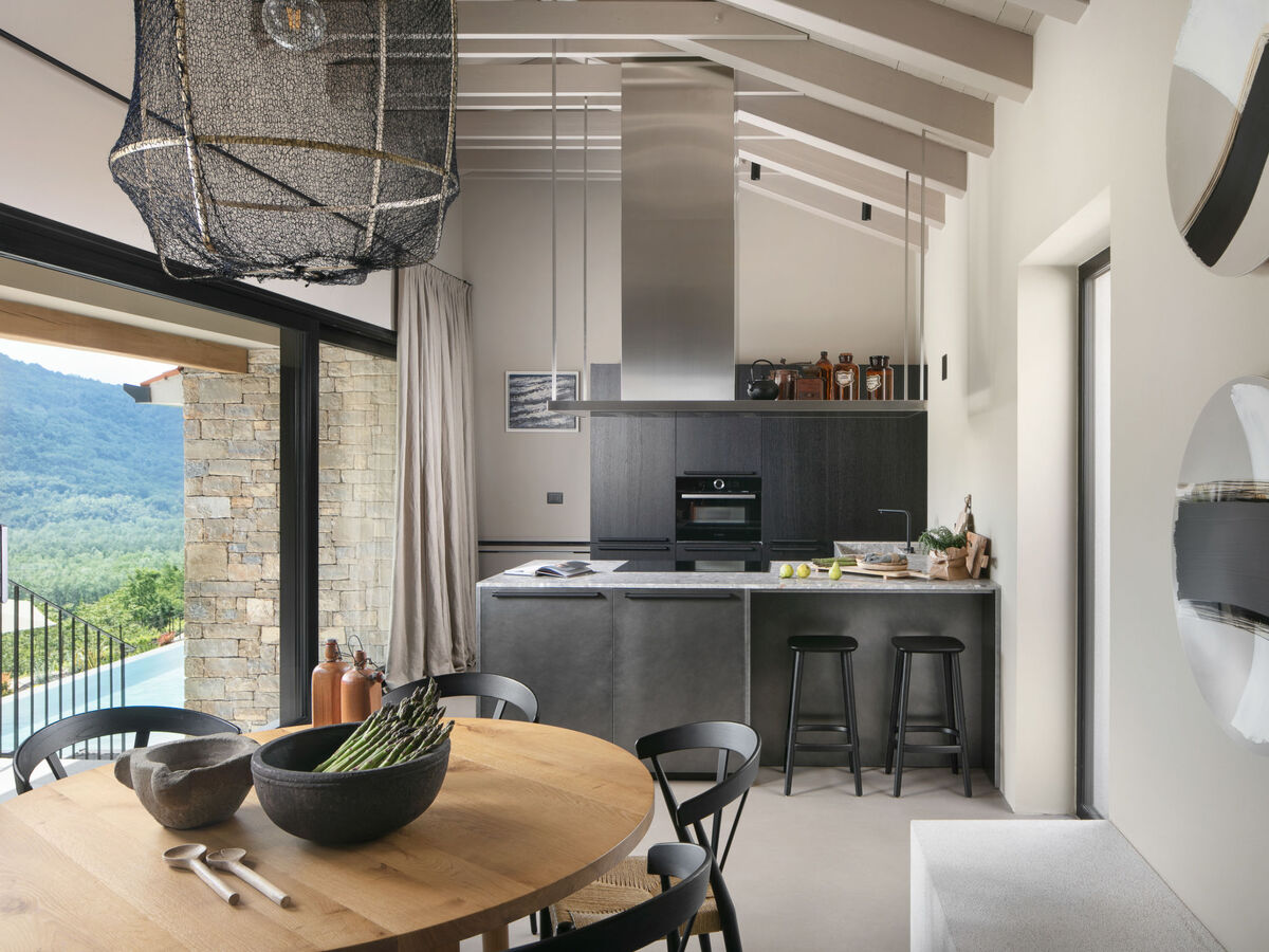 Cuisine ouverte (four, lave-vaisselle, 6 plaques à induction, grille-pain, bouilloire électrique, micro-ondes, congélateur, cafetière électrique).