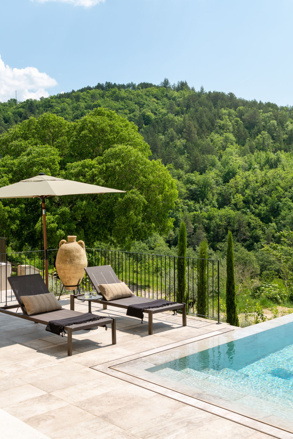 Douche/WC dans l'espace piscine, douche extérieure, terrasse (50 m2), meubles de jardin, barbecue.