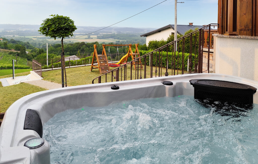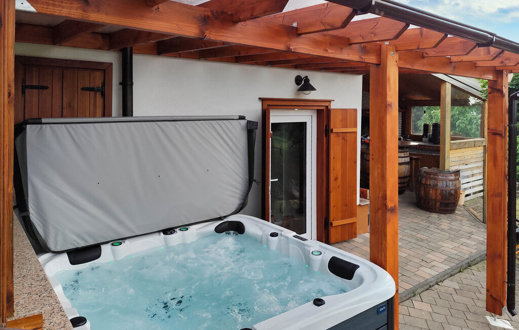 Bien-être à l'extérieur : Location de vacances disposant de chaises-longues et d'un ou plusieurs équipements tels que piscine extérieure, jacuzzi extérieur, lit à baldaquin de jardin etc...
