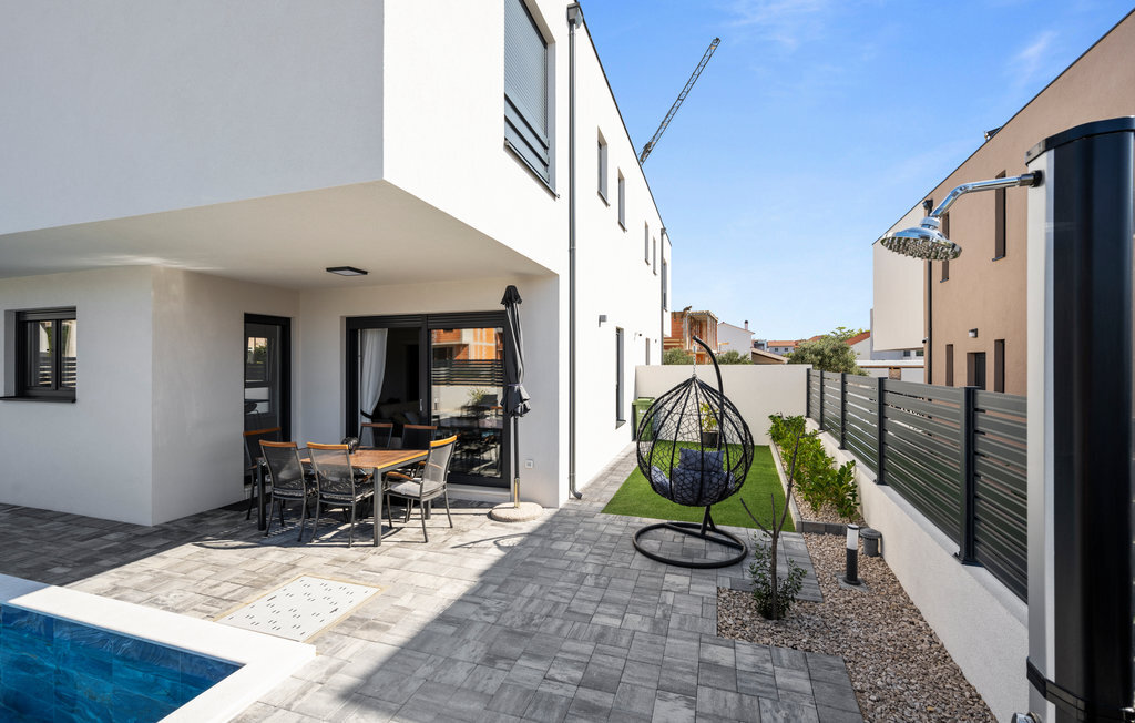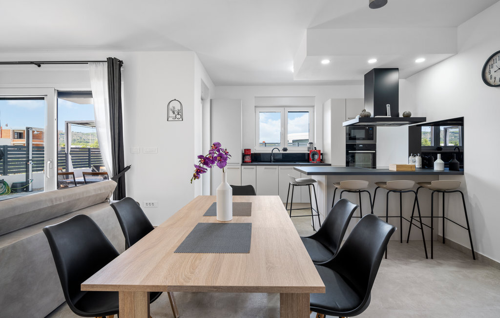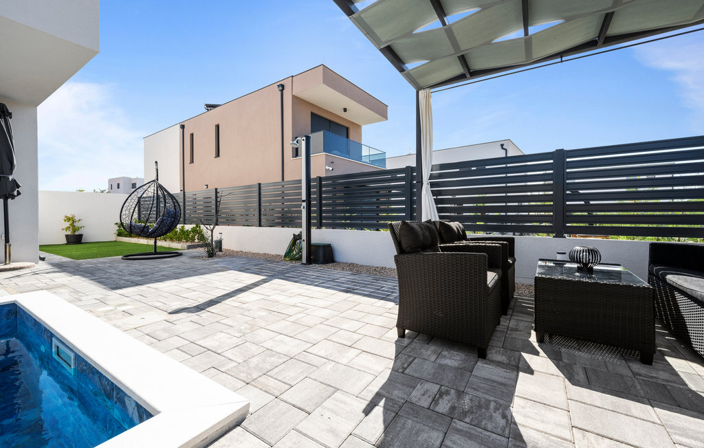 Bienvenue à Vodice et dans cette maison de vacances accueillante et de bon goût, idéale pour un petit groupe ou une grande famille. Dès votre arrivée, sentez-vous comme chez vous et détendez-vous dans les pièces confortables réparties sur deux étages. Vous y trouverez tout ce dont vous avez besoin pour vous détendre, jouer et cuisiner ensemble. Commencez vos journées de vacances par un petit déjeuner sur la terrasse et profitez d'une journée tranquille au bord et dans la piscine en regardant vos enfants jouer dans le jardin clôturé.