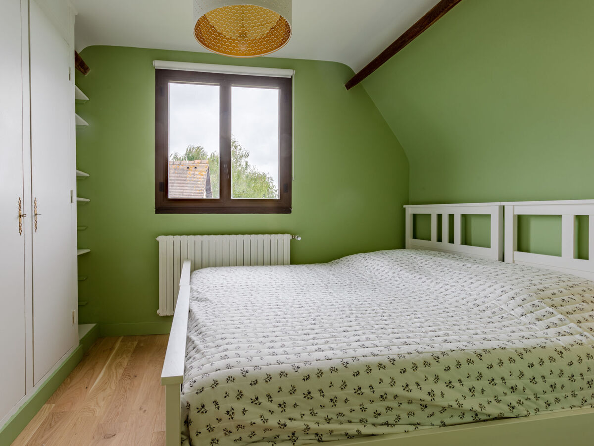 À l'étage supérieur: 1 chambre avec 1 grand-lit (1 x 140 cm, longueur 190 cm).