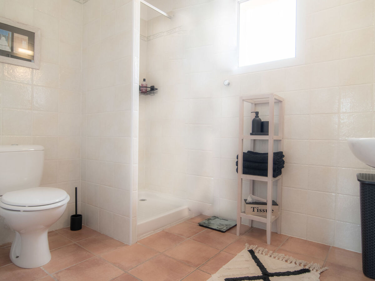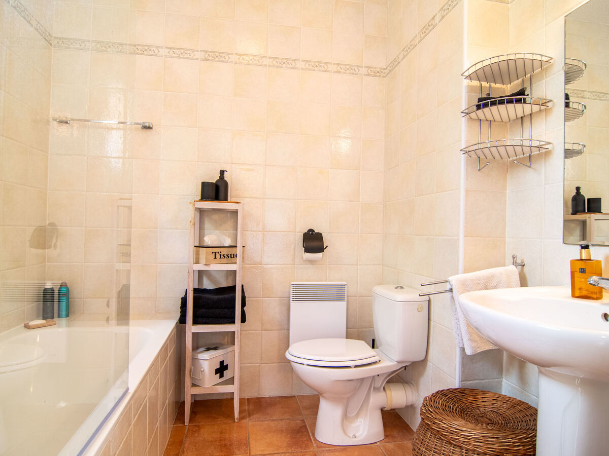 1 chambre avec 2 lits (80 cm, longueur 190 cm), bain/WC.