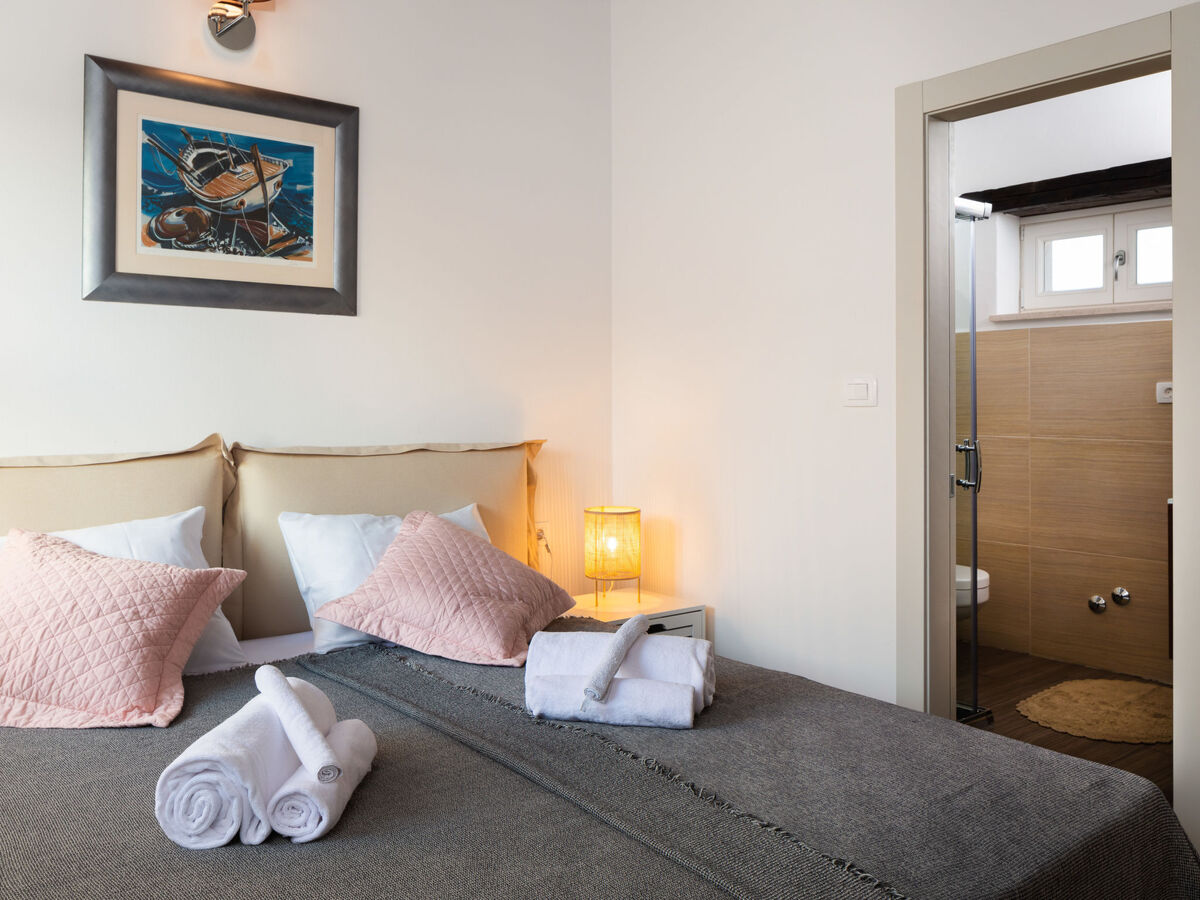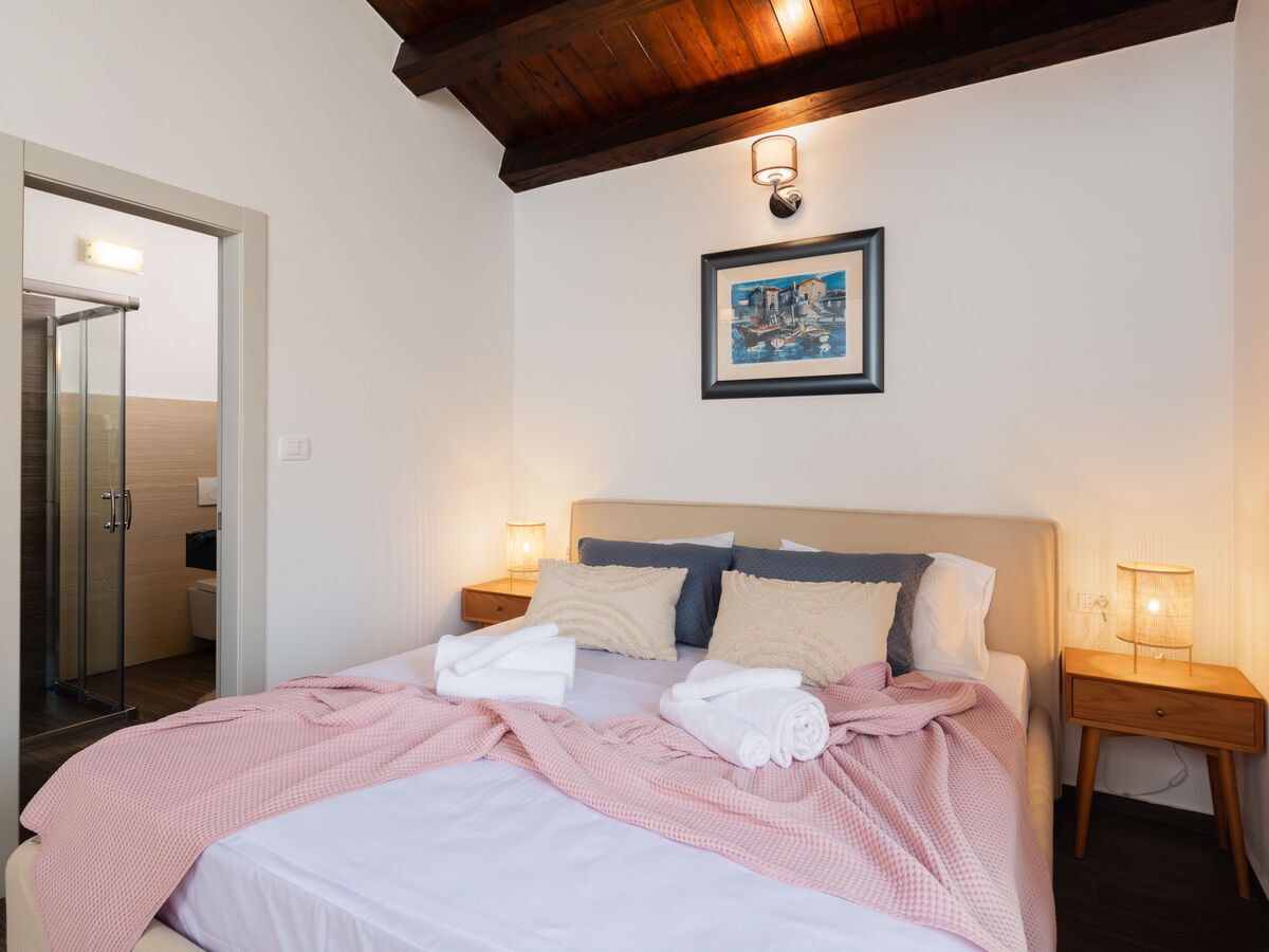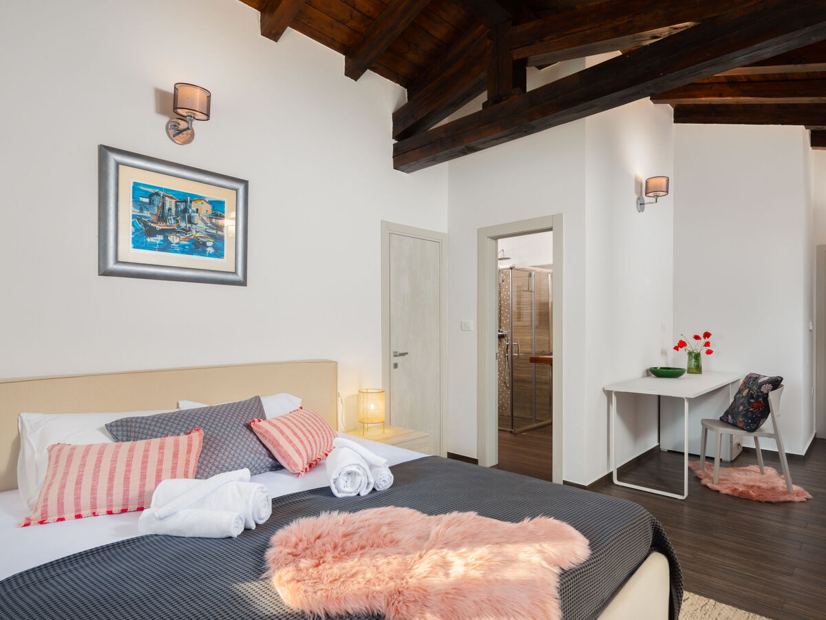 1 chambre avec 1 grand-lit (180 cm, longueur 200 cm), douche/WC et air-conditionné.