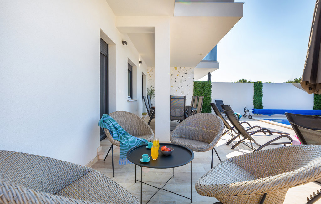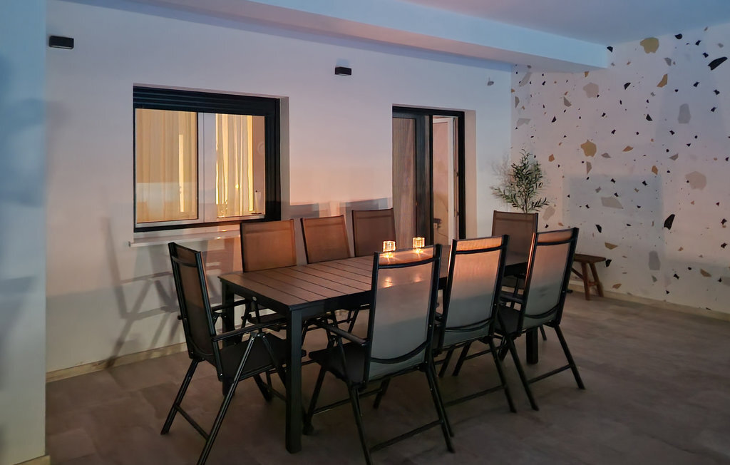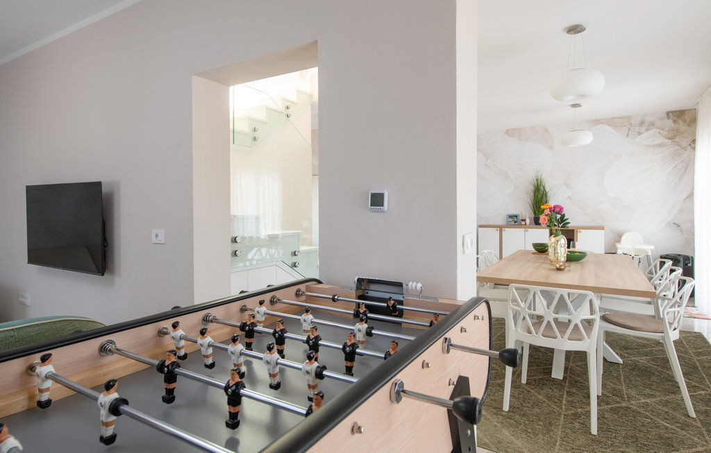 Réjouissez-vous de passer des vacances sans souci pour toute la famille. Cette belle maison est idéale pour se détendre et se consacrer entièrement à la famille. Sur deux étages, vous pouvez vous sentir comme chez vous et profiter du confort et du design. L'aménagement et la décoration soignée créent une oasis de bien-être intime, renforcée par les couleurs claires. Que vous souhaitiez jouer au baby-foot, regarder un film ensemble ou terminer les soirées sur la terrasse avec un bon repas et des jeux, ce logement vous offre les espaces parfaits. Le point culminant est votre piscine privée, que vous pouvez utiliser à tout moment pour vous rafraîchir.
