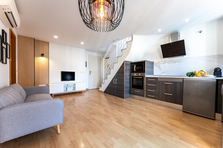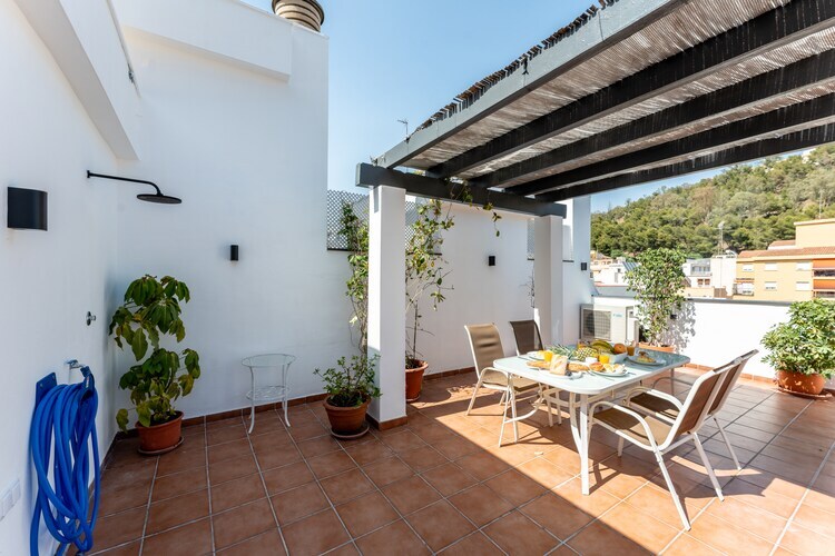 L'appartement dispose de 2 chambres avec un lit double, 1 salle de bain avec baignoire, une cuisine entièrement équipée ouverte sur un séjour lumineux, et une grande terrasse où vous pourrez profiter de différents espaces de loisirs grâce au barbecue et aux transats extérieurs dont vous pourrez profiter ensuite à la salle à manger où célébrer vos soirées