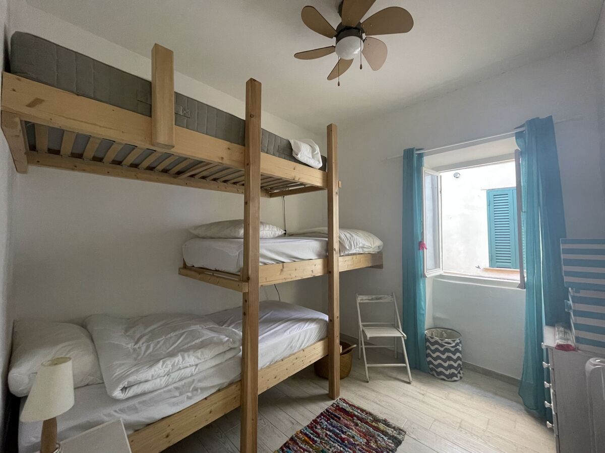 À l'étage supérieur: 1 chambre avec 1 x 3 lits superposés (80 cm).