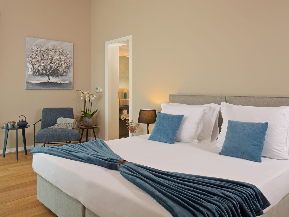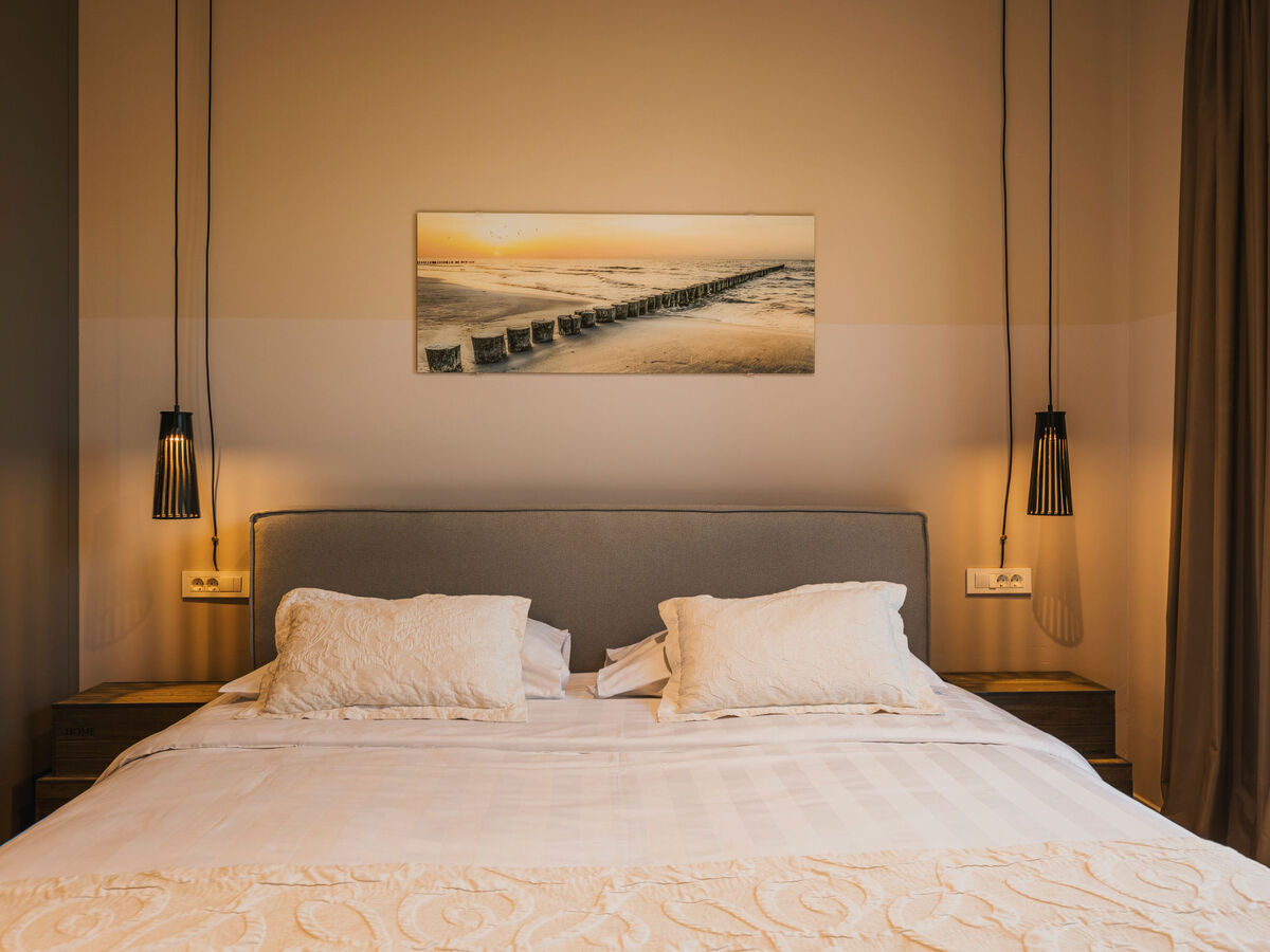 1 chambre avec 1 grand-lit (160 cm, longueur 200 cm), douche/WC, TV (satellite) et air-conditionné.