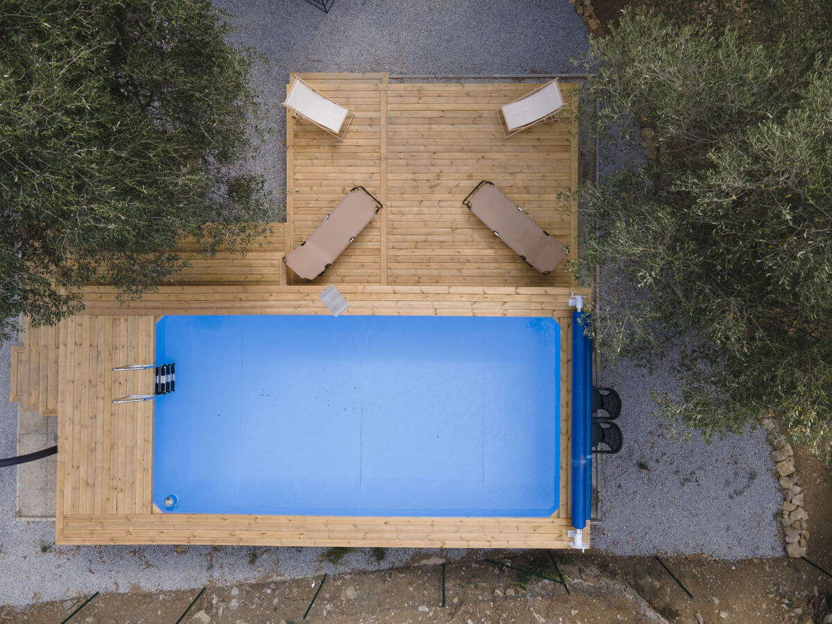 A usage privé: jardin 300 m2 (clôturé) avec arbres, piscine (hors sol) (10 x 5 m, profondeur 100 - 120 cm, disponibilité saisonnière: 01.Jan.