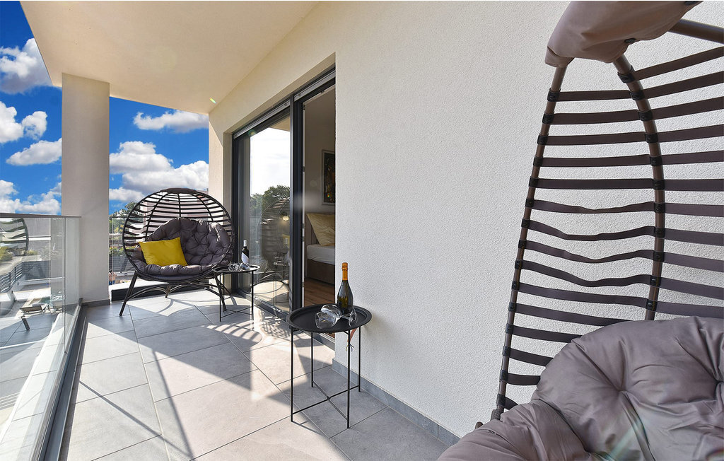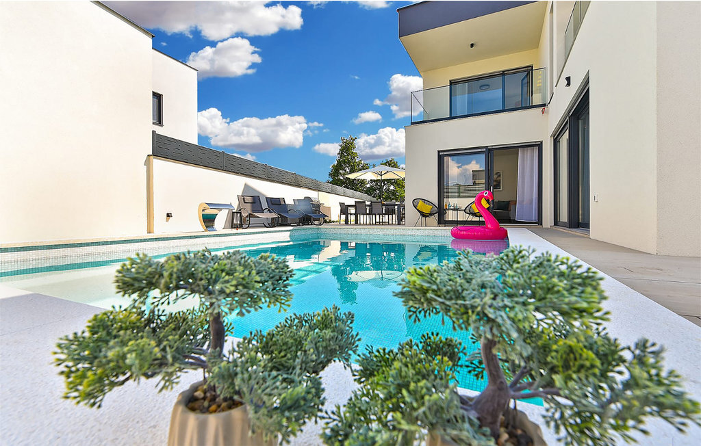 "Au centre de Peroj, cette maison de vacances moderne avec piscine vous accueille.