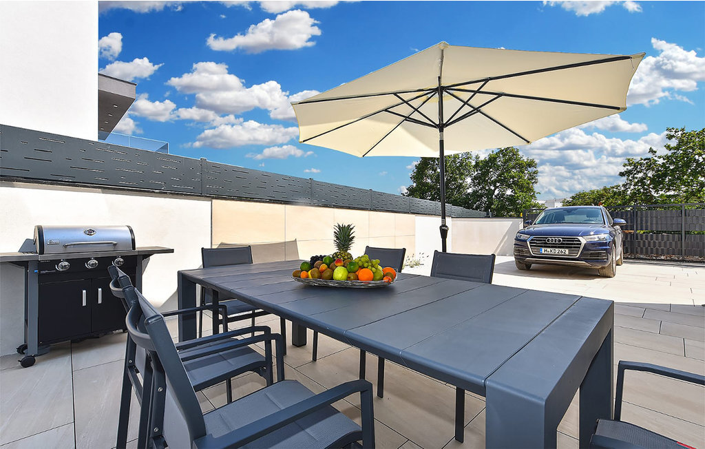 Passez des vacances détendues avec votre famille dans cette belle maison de vacances. Il s'agit d'une maison jumelée dont la partie voisine peut également être louée, selon les disponibilités, et rien ne s'oppose donc à des vacances en famille nombreuse ou avec des familles amies. Profitez des pièces confortables où vous pourrez vous sentir comme chez vous, vous détendre en regardant un film sur le canapé ou préparer de bons petits plats dans la cuisine. Le matin, buvez votre verre au calme sur le balcon ou réunissez-vous sur la terrasse pour le petit-déjeuner, puis baignez-vous dans la piscine.