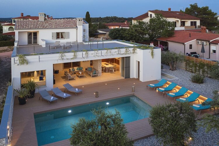 Cette Villa Balizerka moderne et entièrement rénovée est située à Stinjan dans un emplacement privilégié non loin de Pula et de Fazana, ce qui en fait un choix idéal pour vos vacances. Vous pouvez rejoindre les belles plages et la mer claire en quelques minutes de route. La villa se compose de 5 chambres spacieuses entièrement équipées et peuvent accueillir jusqu'à 10 personnes. Il s'étend sur trois étages, donc au rez-de-chaussée vous attend du salon, de la salle à manger et de la cuisine, qui sont bien reliés à la cuisine extérieure et à la terrasse couverte où se trouve la table à manger, ainsi que le salon avec des sièges confortables et la télévision par satellite. De plus, au rez-de-chaussée se trouve un appartement indépendant avec une chambre et une salle de bain et une salle de bains supplémentaire dans la cuisine extérieure. Juste au-dessous du premier étage, il y a une chambre et une salle de bain, tandis que le premier étage dispose de trois chambres. Les intérieurs sont décorés dans un style méditerranéen et des nuances jaunes-bleues qui créeront l'atmosphère marine idéale pour vos vacances de rêve. Depuis que vous avez des cuisines intérieures et extérieures à votre disposition, c'est à vous de préparer de délicieux repas avec vos proches sans avoir à vous soucier de quoi que ce soit parce que vous avez absolument tout à votre disposition. Si vous souhaitez vous détendre, vous pouvez vous échapper au balcon et profiter de la vue sur la mer ou tout simplement se coucher au bord de la piscine entourée de plantes méditerranéennes et oubliez tous les problèmes. Villa Balizerka à Stinjan est définitivement le meilleur choix pour votre prochaine destination!