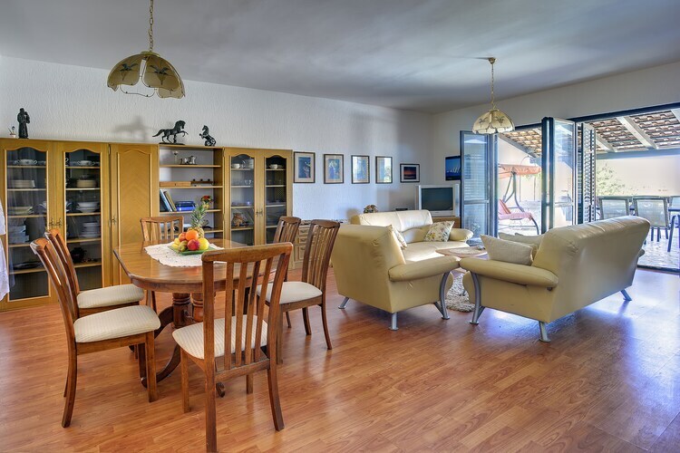 Rez-de-chaussée: (Salle de séjour(TV(satellite), table, coin salon, climatisation), cuisine ouverte(plaque de cuisson(4 foyers), cafetière/percolateur, four, four/micro-onde combinés, combinaison réfrigérateur/congélateur), chambre(lit double), chambre(lit simple), salle de bains(baignoire, lavabo, WC), terrasse(couverte)) entre deux: (chambre(Lit superposé), chambre(lit simple), chambre(2x lit simple), salle de bains(baignoire-douche, lavabo, WC)) Annexe Rez-de-chaussée: (Salle de séjour(table, coin salon, climatisation), cuisine ouverte(plaque de cuisson(4 foyers), cafetière/percolateur, four, réfrigérateur), chambre(Lit superposé)) douche(extérieur), lave-linge , jardin(privé, clôturé), mobilier de jardin, transats, parking, piscine(privé, 8 x 4 m.)