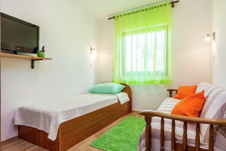 Rénové en 2014, cette charmante maison de vacances à Pula propose un hébergement pour quatre personnes au rez-de-chaussée avec jardin. L'intérieur est confortable, la décoration est dominée par le bois, les sols sont carrelés dans le salon et dans la salle de bain et recouvert de stratifiés dans les chambres. En raison du grand jardin vert, les clients qui apportent leurs animaux de compagnie en vacances profiteront sûrement de cet environnement naturel merveilleux. Dans la cour, il y a une cheminée. Il y a aussi une terrasse meublée pour les repas d'Al Fresco.