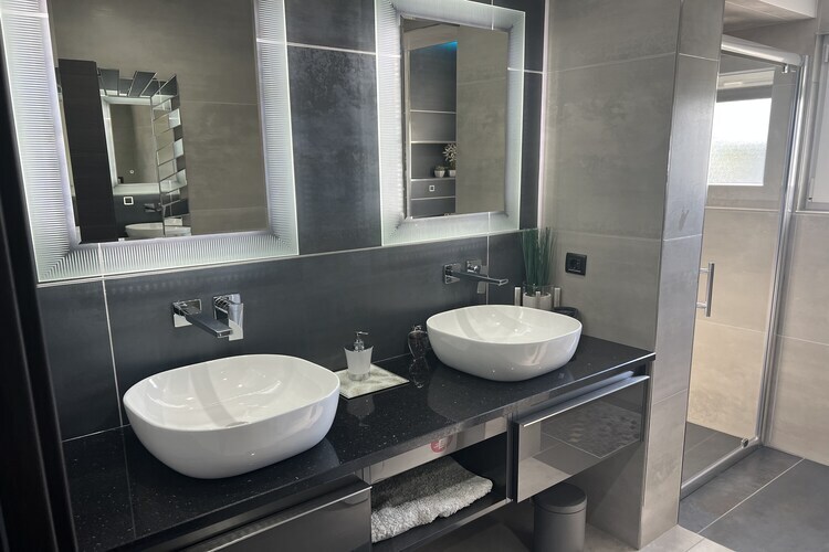 Rez-de-chaussée: (Salle de séjour(canapé-lit double, TV(satellite), climatisation), cuisine ouverte(table, bouilloire, grille-pain, plaque de cuisson(4 foyers), cafetière/percolateur, four/micro-onde combinés, lave-vaisselle , combinaison réfrigérateur/congélateur), chambre(lit double(160 x 200 cm)), chambre(2x lit simple(90 x 200 cm)), salle de bains(douche, lavabo, WC), terrasse(couverte)) entre deux: Au 1er étage: (Salle de séjour(TV(satellite), coin salon, climatisation), cuisine ouverte(bouilloire, grille-pain, plaque de cuisson(4 foyers), cafetière/percolateur, four/micro-onde combinés, lave-vaisselle , combinaison réfrigérateur/congélateur), chambre(lit double(160 x 200 cm)), chambre(2x lit simple(90 x 200 cm)), salle de bains(douche, lavabo, WC), balcon) salle de fitness(appareils de fitness), Bain à bulles, douche(extérieur), lave-linge , jardin(privé, clôturé), mobilier de jardin, transats, barbecue, parking, piscine(privé, chauffée, 9 x 4 m.), tennis de table/ping-pong, jeu de fléchettes, lit d'enfant, fer à repasser, sèche-cheveux