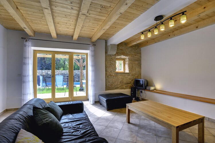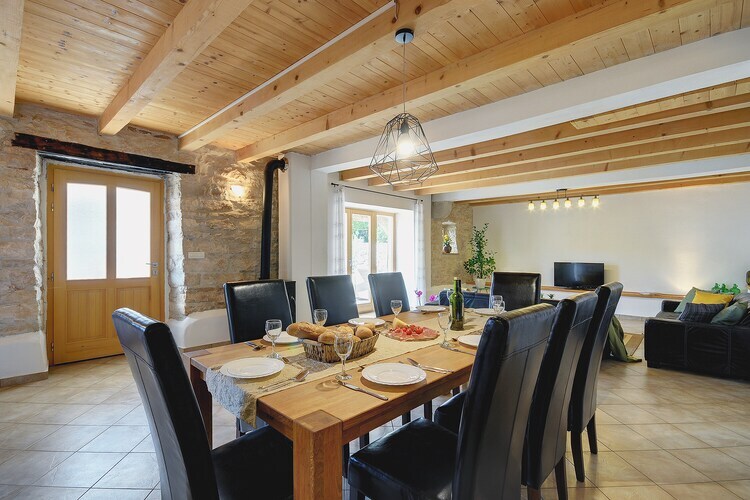 Fin de la terrasse maison, Villa Katarina à Batglug, près de la ville de Žminj, se propage sur deux étages et est entouré d'un beau mur de pierre. Étant donné que la Villa Katarina est située dans la centrale d'Istrie, loin de la mer, si vous voulez rafraîchir, vous pouvez le faire dans la piscine, située dans le jardin, à laquelle vous avez un accès direct depuis le salon. Cette villa à Batglug est idéale pour les familles avec enfants.