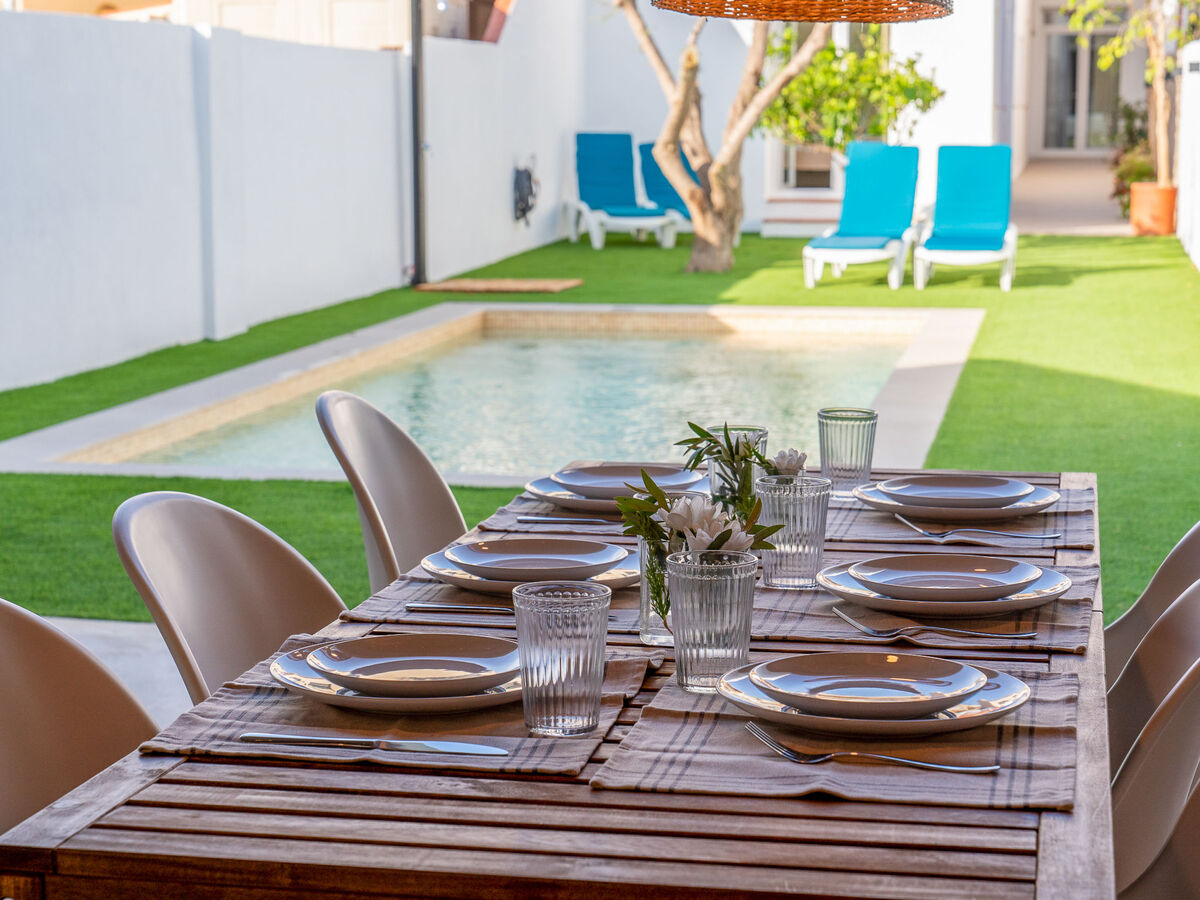 A usage privé: jardin (clôturé) avec pelouse, piscine (7 x 3 m, profondeur 150 - 120 cm, disponibilité saisonnière: 01.Jan.