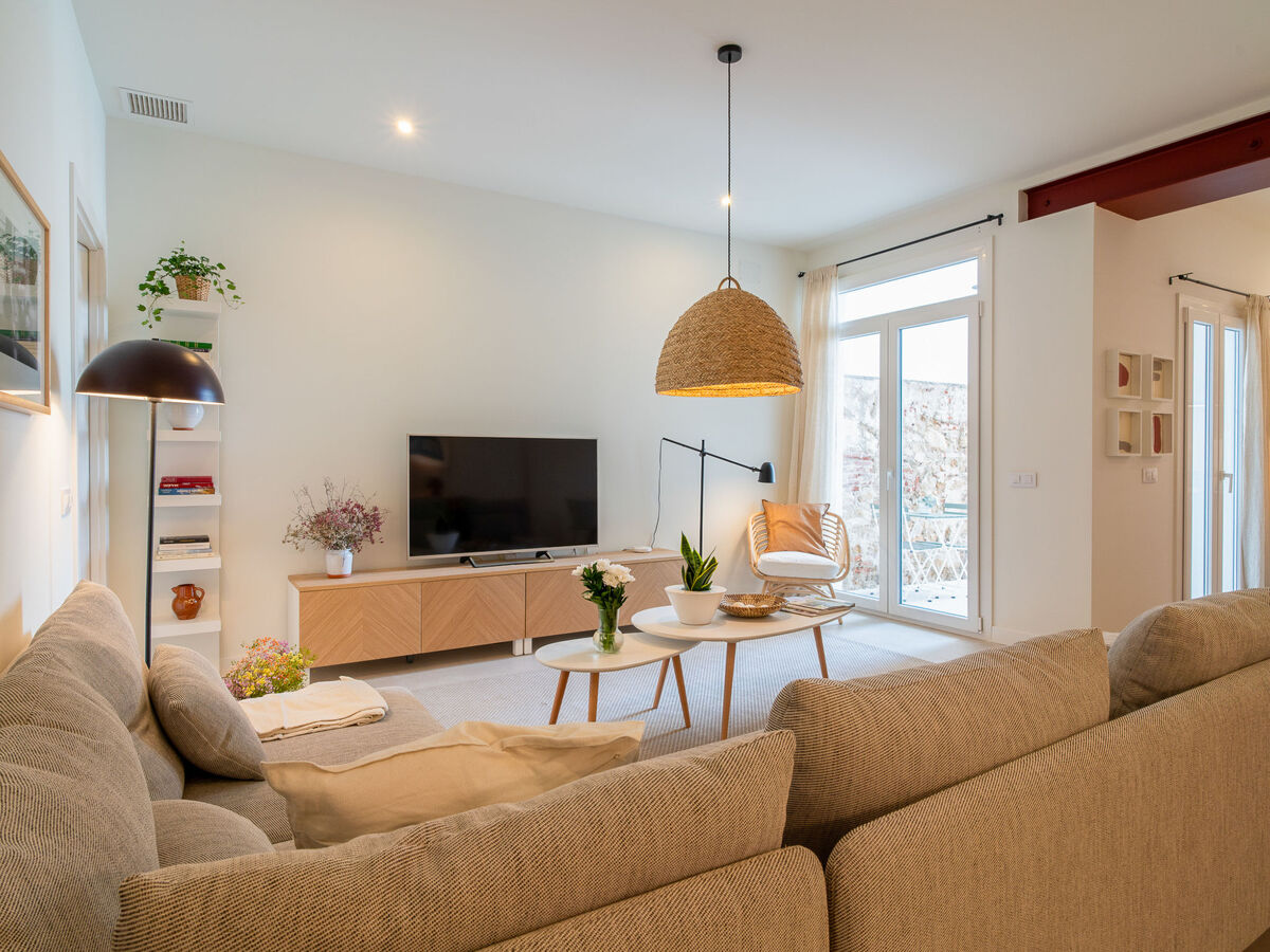 Aménagement confortable et moderne: séjour/salle à manger avec table pour les repas et Télévision numérique.