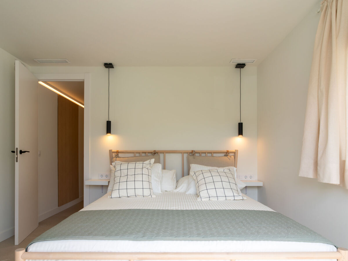 1 chambre avec 1 grand-lit (160 cm, longueur 200 cm), chauffage électrique et air-conditionné.