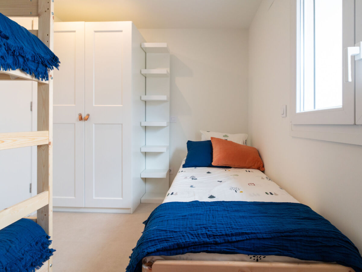 1 chambre avec 1 lit (80 cm, longueur 200 cm), 1 x 2 lits superposés (90 cm, longueur 200 cm), chauffage électrique et air-conditionné.