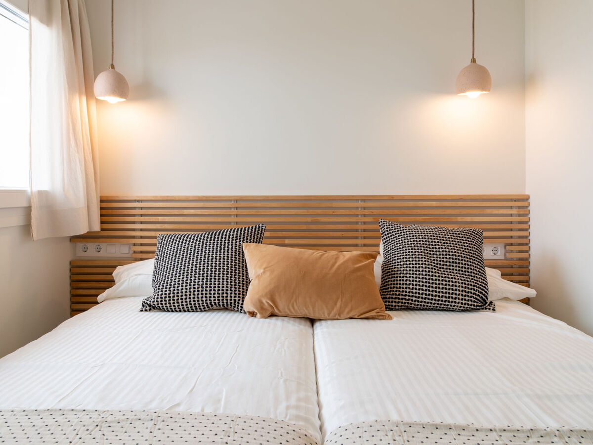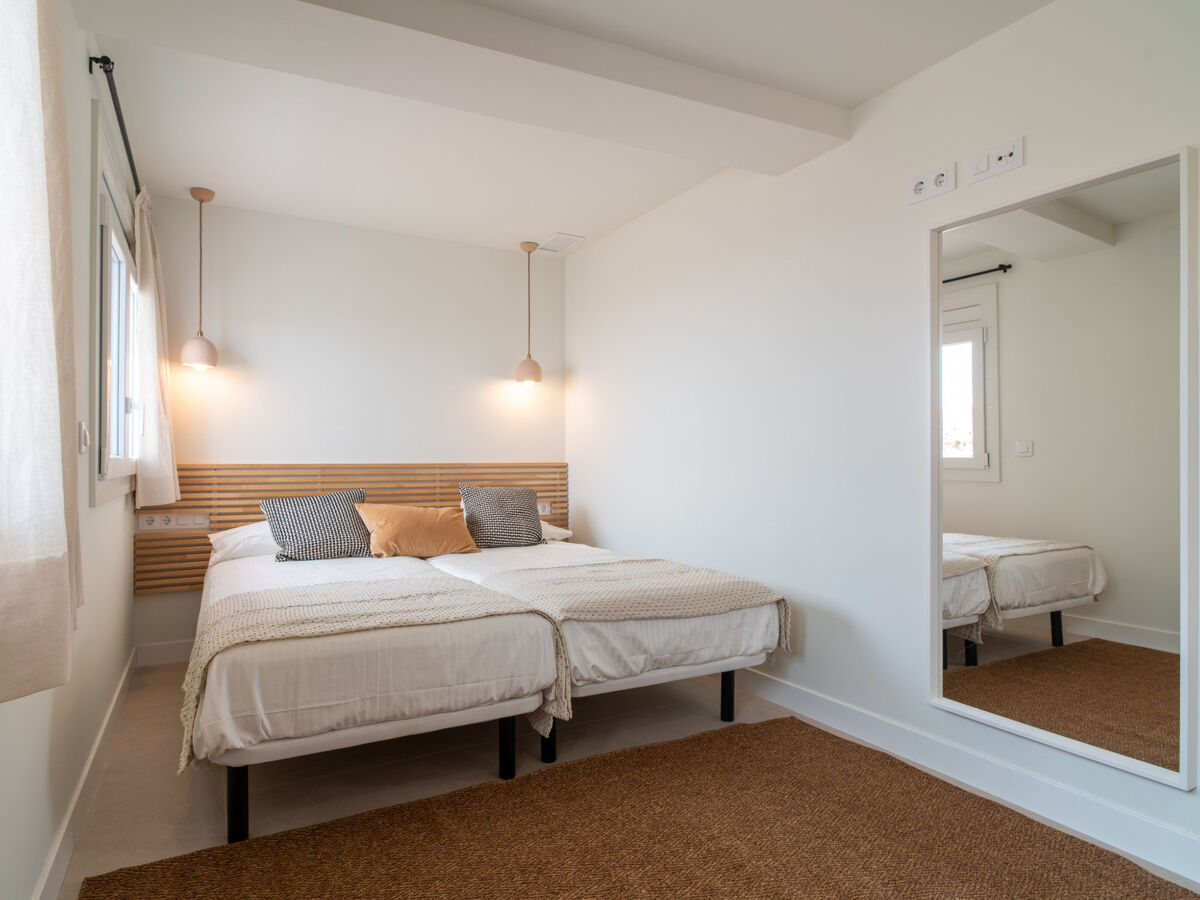 1 chambre avec 2 lits (90 cm, longueur 200 cm), chauffage électrique et air-conditionné.