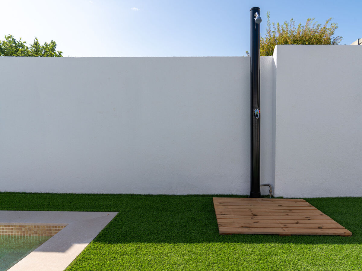 Douche/WC dans l'espace piscine, barbecue, place de parking (couvert).