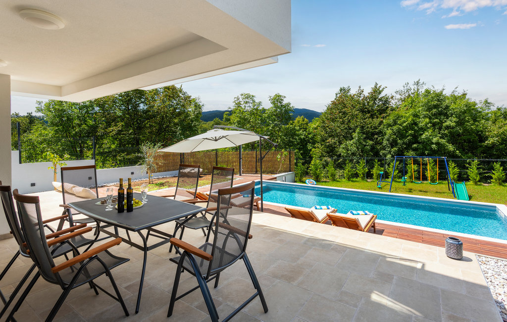 Profitez de vos vacances dans cette belle maison moderne avec piscine et installations pour enfants.