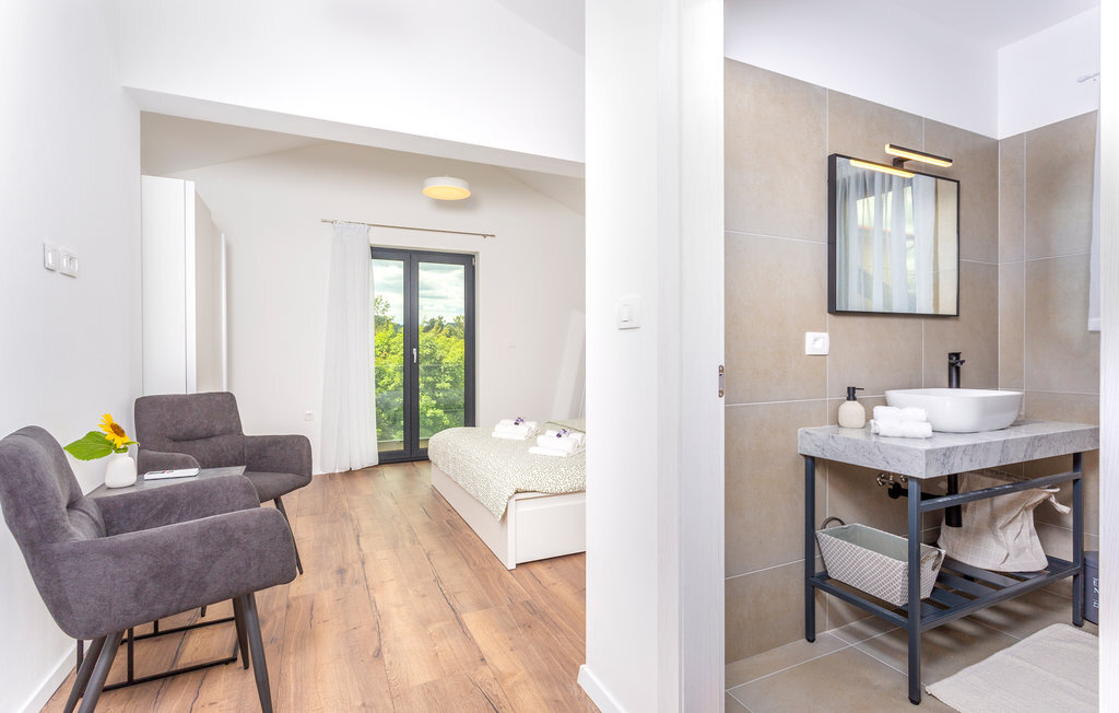 Vous séjournez ici à Jurdani, dans l'arrière-pays de la Riviera d'Opatija, avec de nombreuses installations pour vos loisirs actifs, vos divertissements et vos loisirs. Explorez les sentiers de randonnée balisés, les chemins de randonnée ainsi que le parc naturel d'U?ka. Profitez des pistes de VTT dans la forêt, ainsi que de l'aérodrome de parapente à proximité. Profitez des belles plages de la Riviera d'Opatija, y compris Medveja, Opatija et Mo??eni?ka Draga avec de nombreuses offres de divertissement en mer. Le plaisir ne doit pas non plus être négligé et vous invite à goûter aux meilleurs restaurants de la mer Adriatique sur la Riviera d'Opatija toute proche !