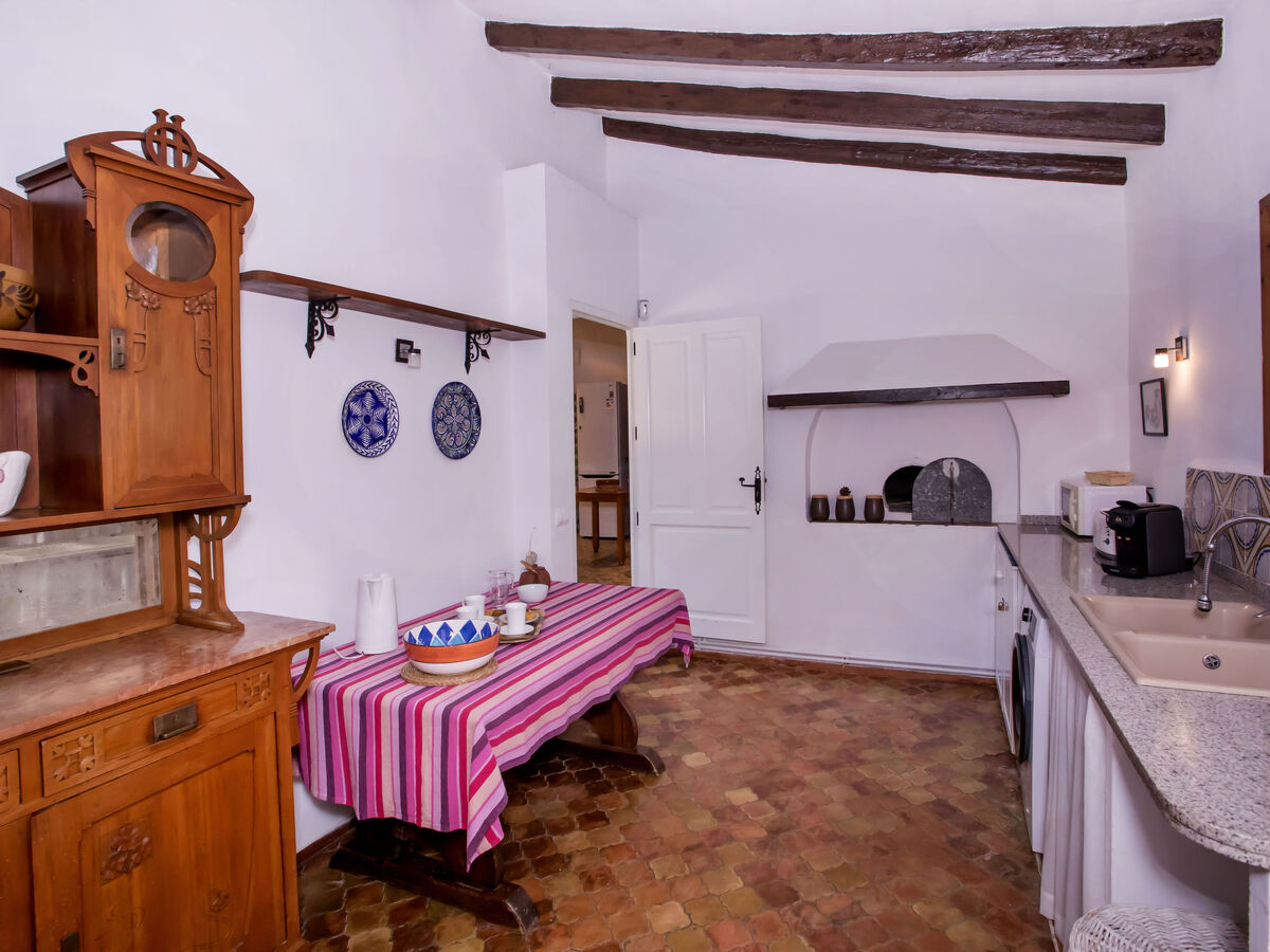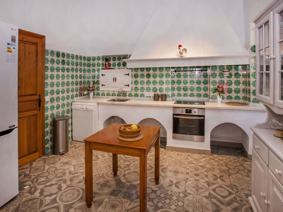 Grande cuisine (four, lave-vaisselle, 3 plaques vitrocéramiques, grille-pain, micro-ondes, congélateur, cafetière électrique).