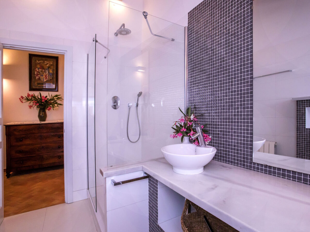 1 chambre avec 1 grand-lit (150 cm, longueur 200 cm), bain/douche/WC.