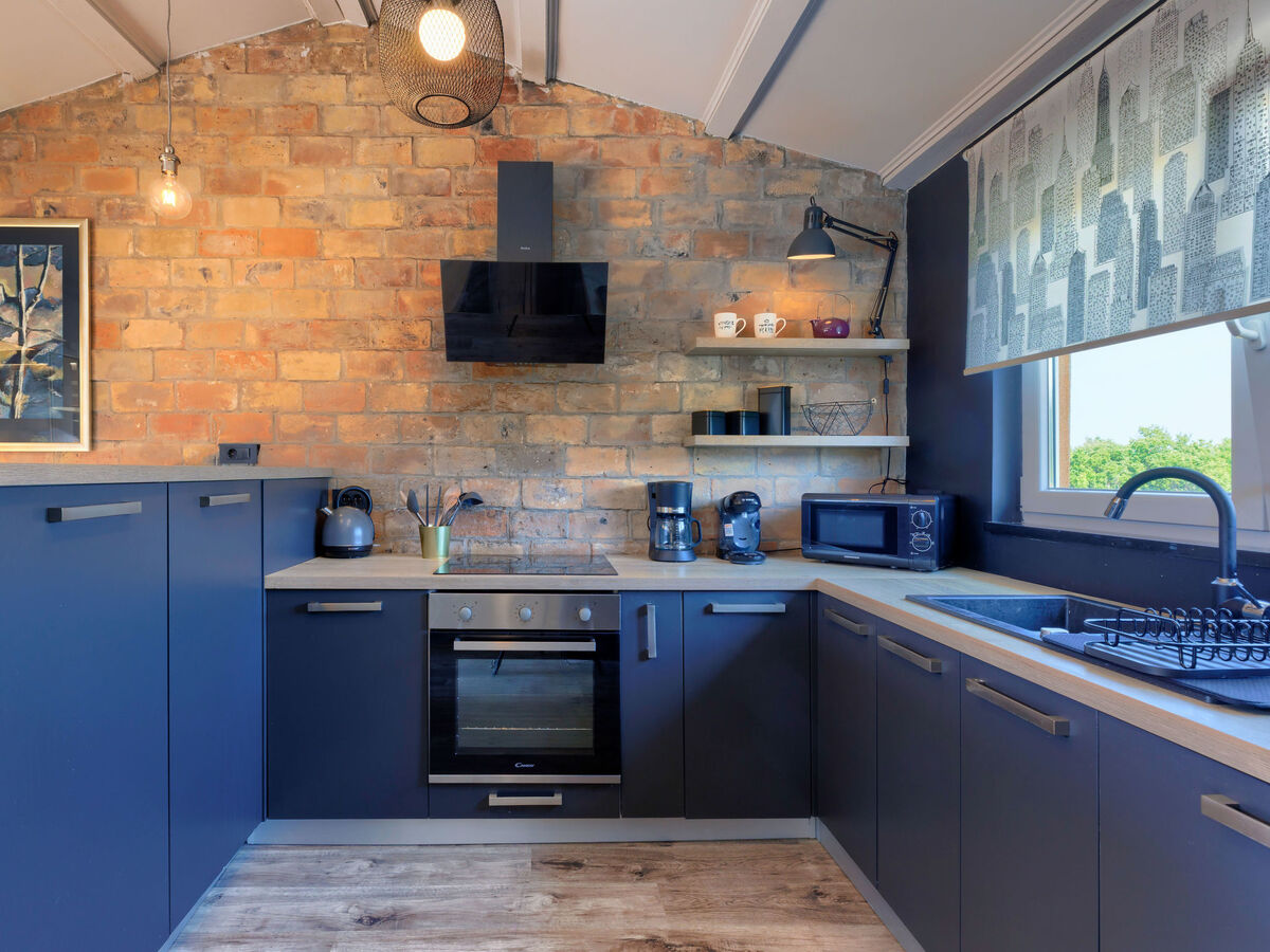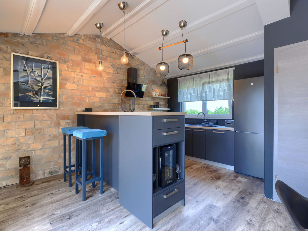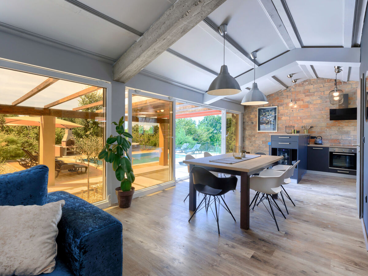 Cuisine ouverte (four, lave-vaisselle, 4 plaques vitrocéramiques, grille-pain, bouilloire électrique, micro-ondes, congélateur, cafetière électrique).