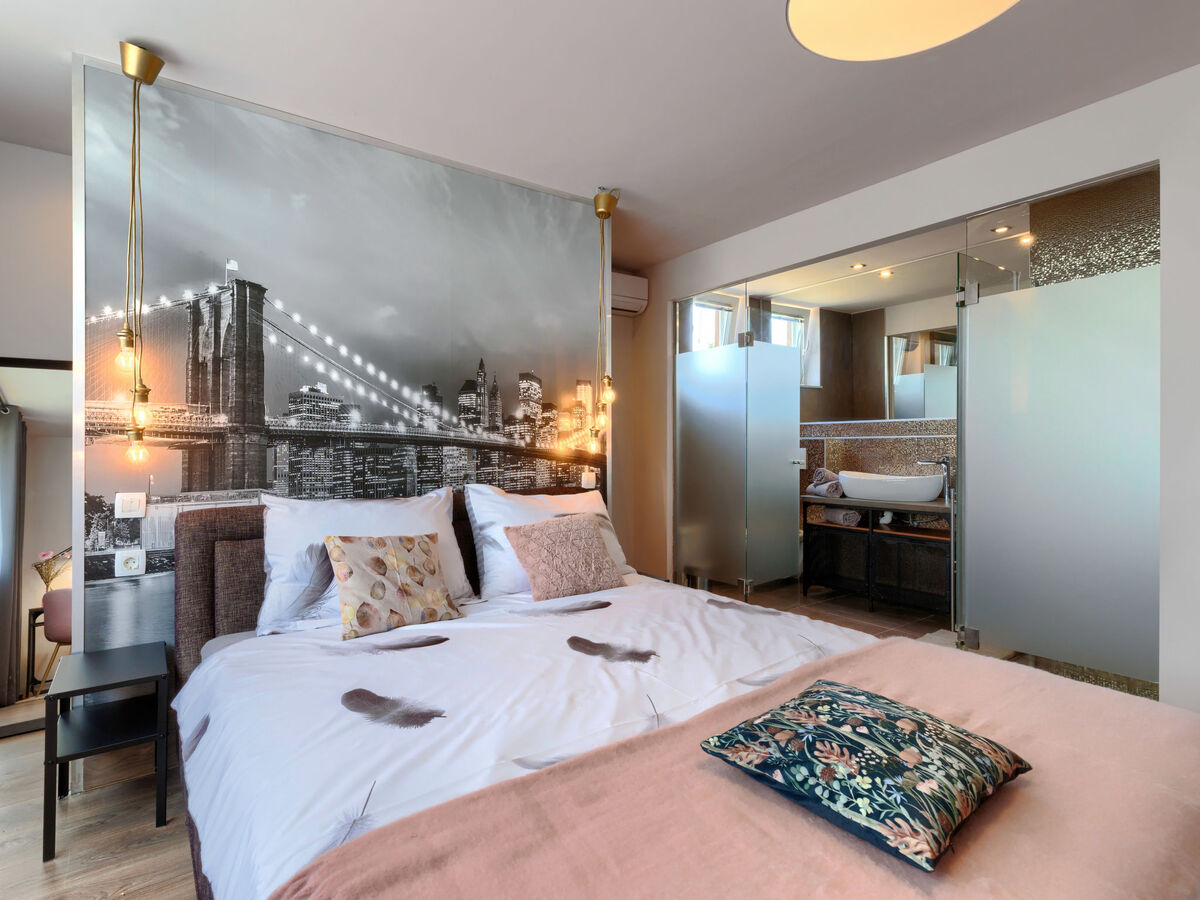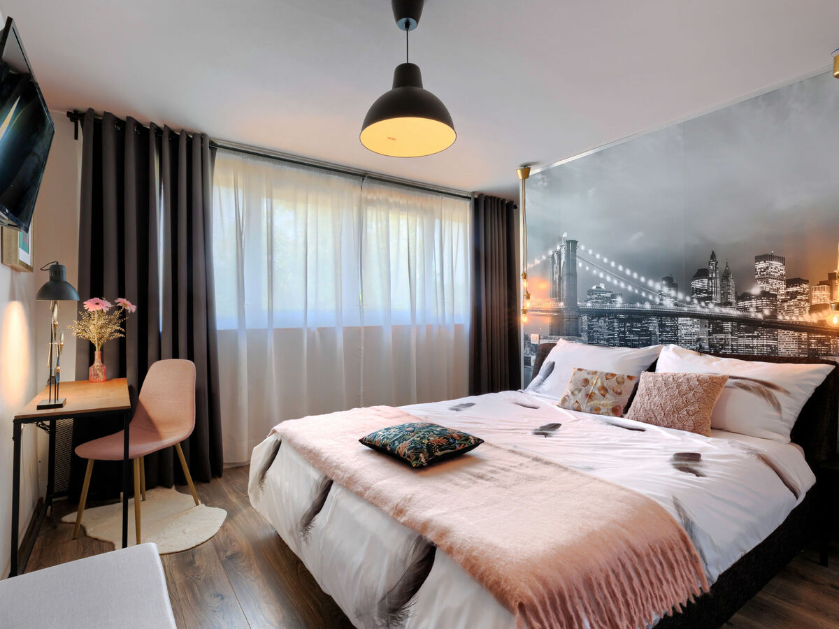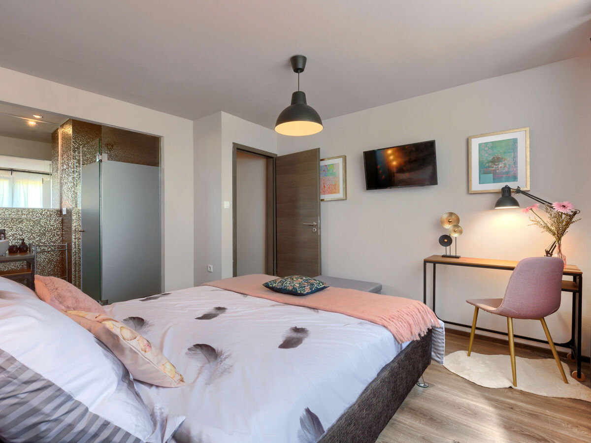 1 chambre avec 2 lits (90 cm, longueur 200 cm), douche/WC et TV (satellite) (écran plat), air-conditionné.