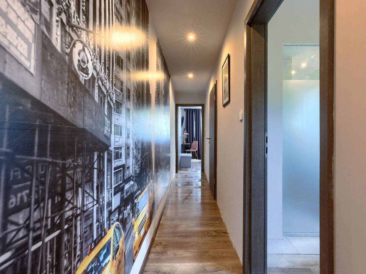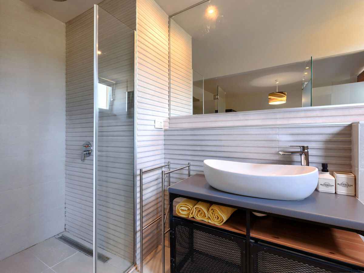 À l'étage inférieur: 1 chambre avec 1 grand-lit (160 cm, longueur 200 cm), douche/WC et TV (satellite) (écran plat), air-conditionné.
