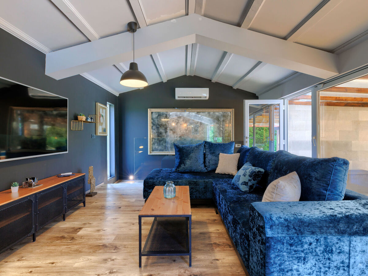 Séjour/salle à manger avec 1 divan-lit (140 cm, longueur 200 cm), TV (satellite) (écran plat), air-conditionné.