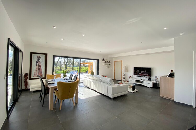 Maison neuve de plain-pied, entièrement rénovée située au calme dans la commune de Margaux Cantenac à 45 minutes de Bordeaux et 50 minutes de la magnifique plage le Porge océan. La grande pièce de vie donne sur une terrasse extérieure ainsi qu’une piscine d’eau salée entourée de ses transats, parasol, salon de jardin ainsi que de plusieurs places de stationnements.