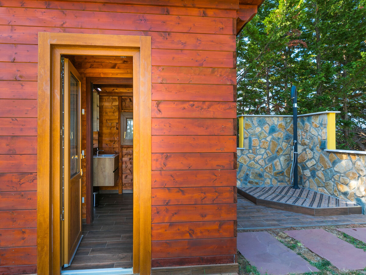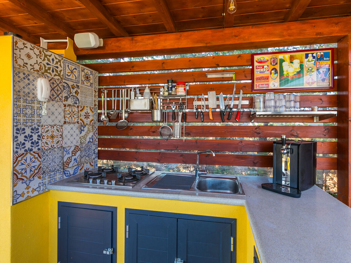Cuisine ouverte (four, lave-vaisselle, Poêle à gaz, 4 feux, grille-pain, bouilloire électrique, micro-ondes, cafetière électrique) avec table pour les repas, chauffage électrique et air-conditionné.