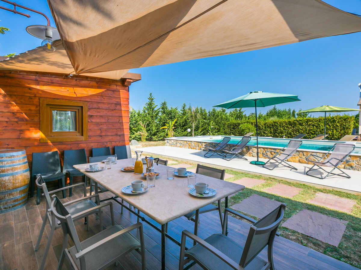 Douche/WC dans l'espace piscine, bain à remous , pool house avec réfrigérateur et plaque de cuisson, jardinet, terrasse, meubles de jardin, barbecue, entretien de la piscine par le propriétaire/jardinier.