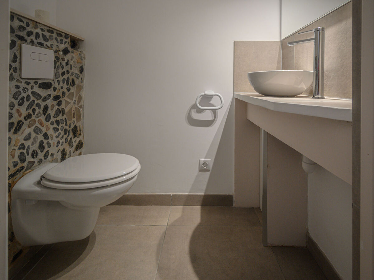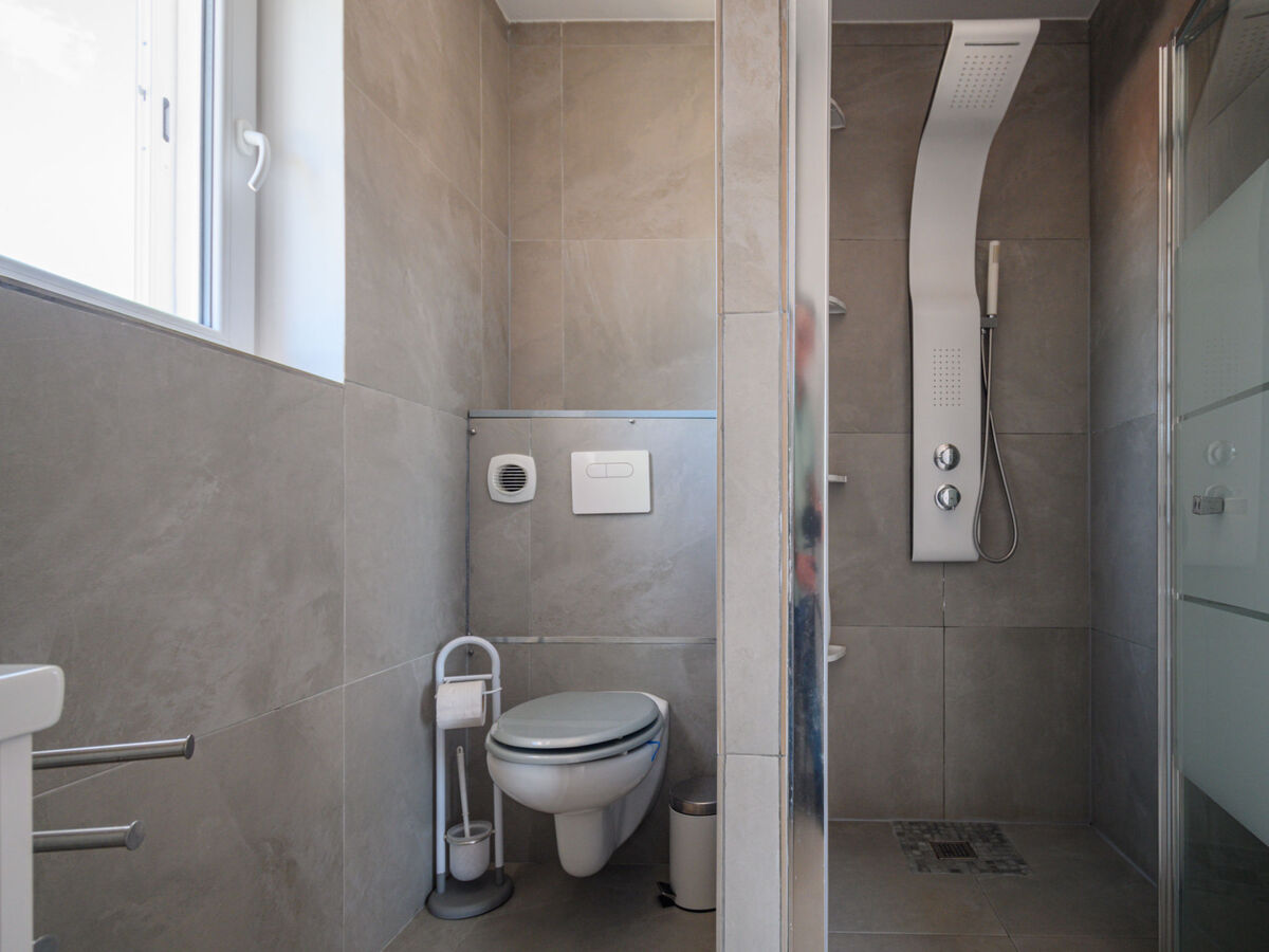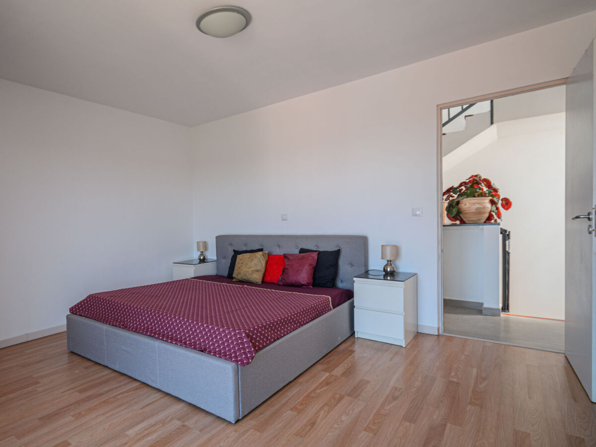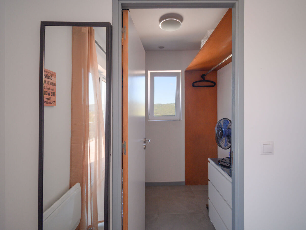 À l'étage supérieur: 1 chambre avec 1 grand-lit (160 cm, longueur 200 cm), douche, chauffage électrique et ventilateur.
