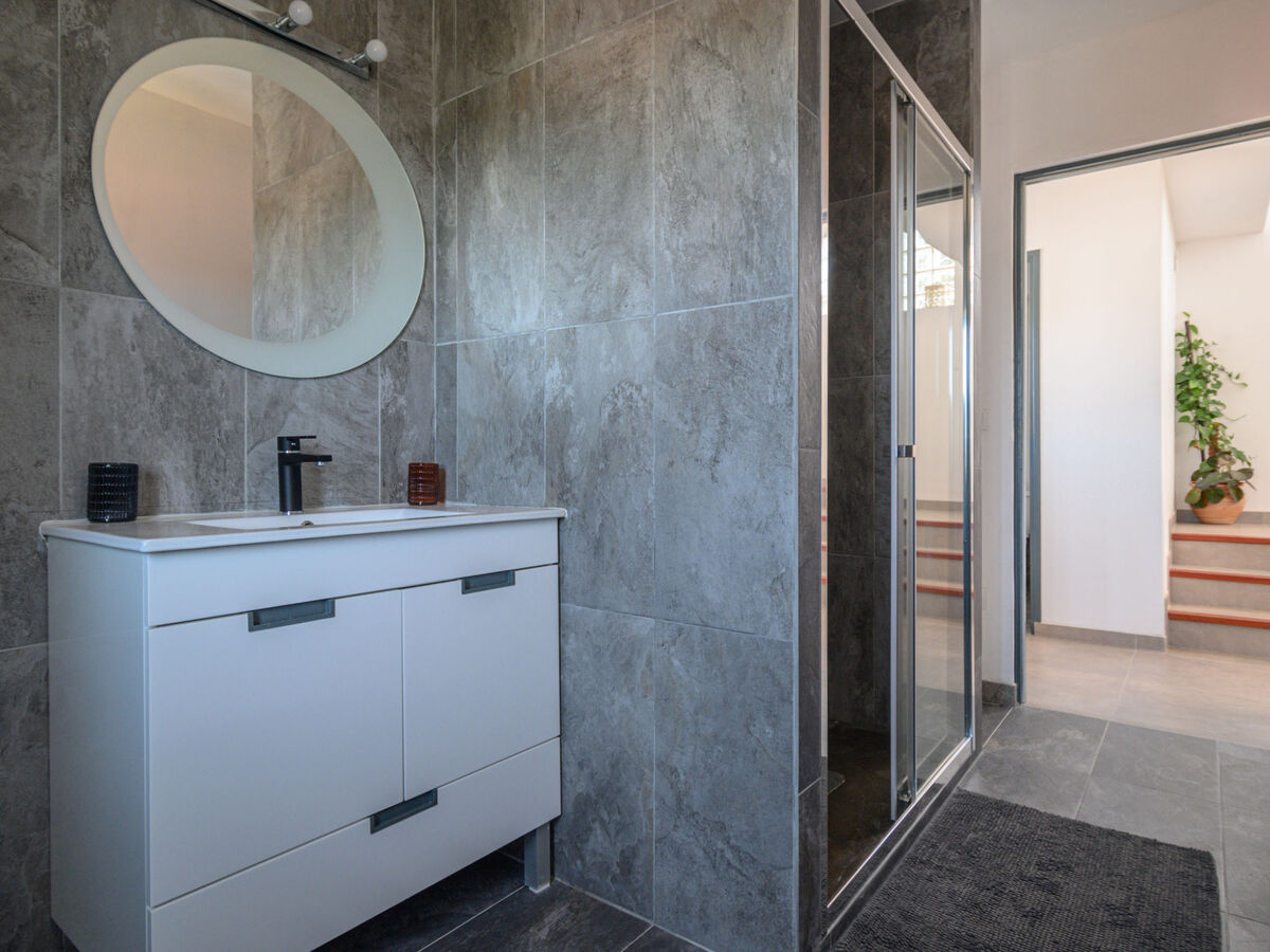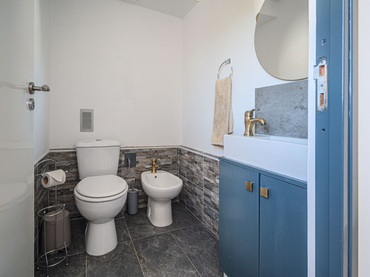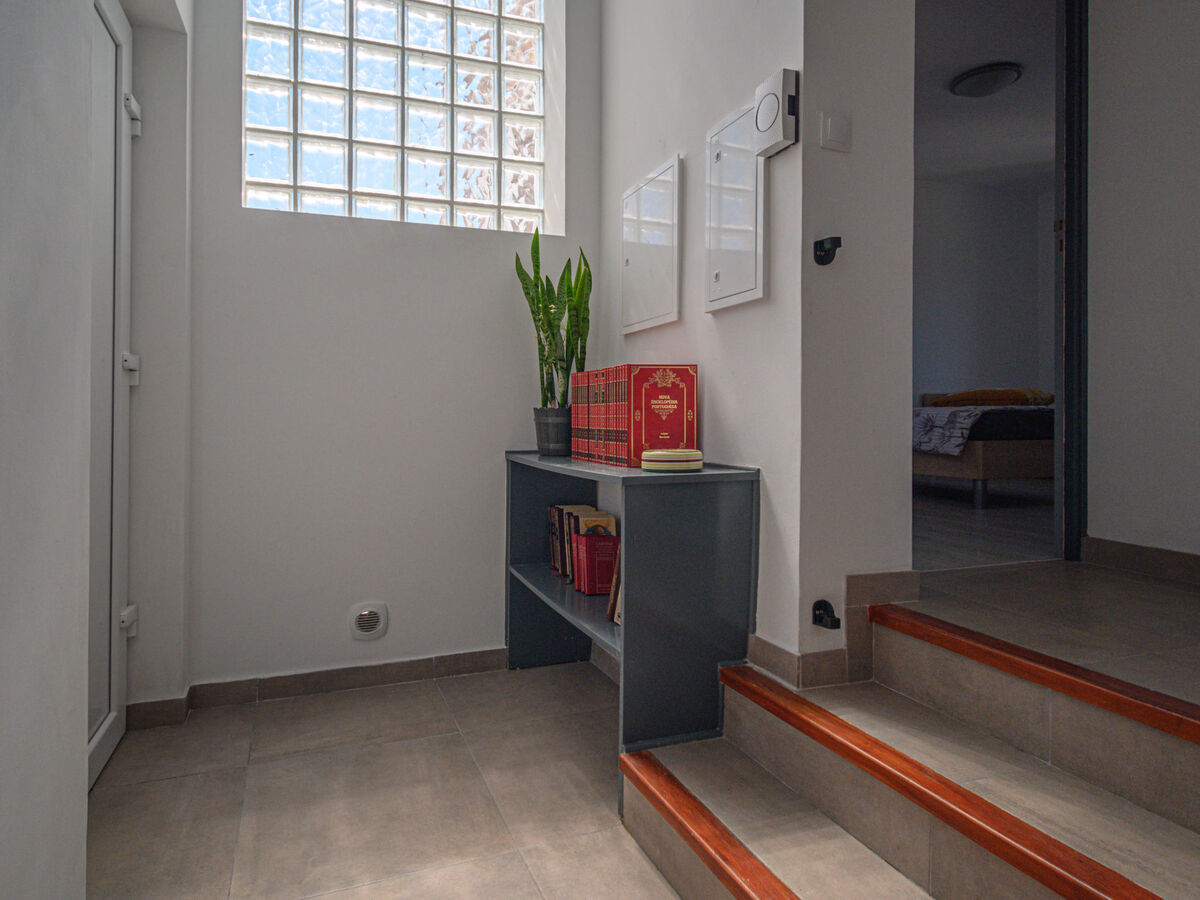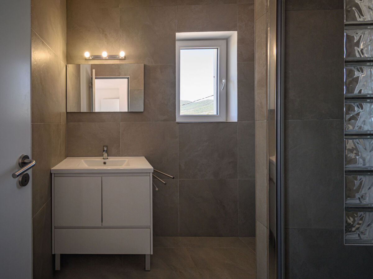 À l'étage supérieur: 1 chambre avec 1 grand-lit (160 cm, longueur 200 cm), douche, chauffage électrique et ventilateur.