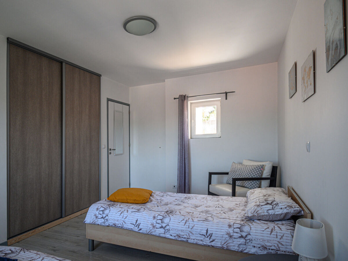 Aménagement confortable et plaisant: 1 chambre avec 2 lits (90 cm, longueur 200 cm), chauffage électrique et ventilateur.